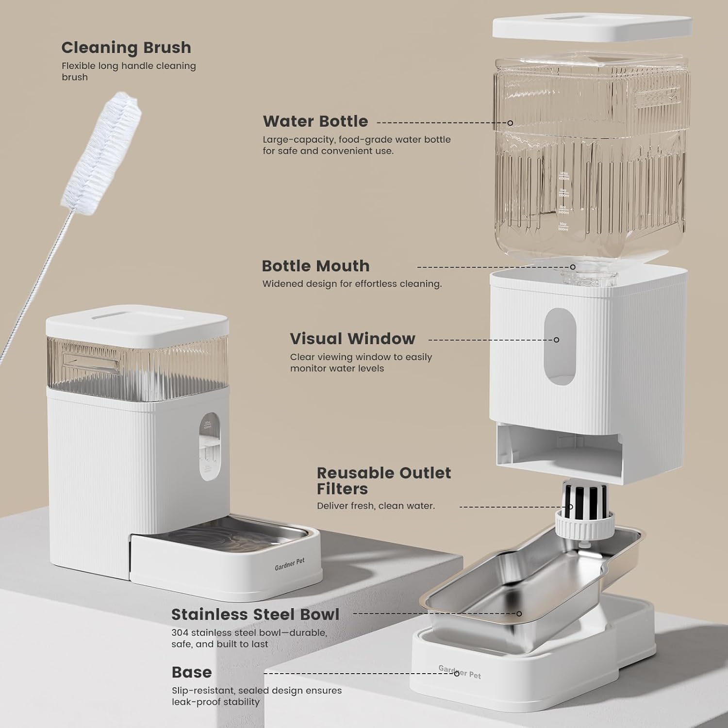 - Premium Pet-Safe Materials - Gardner Pert dog water bowl dispenser comes with 304 stainless steel bowl + cleaning brush guarantees a safe, easy-to-clean water supply for pets.