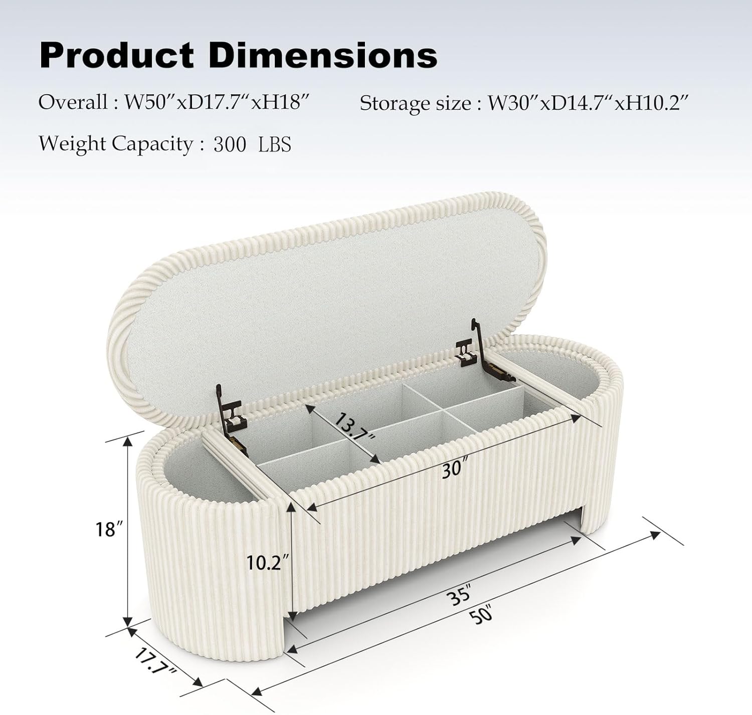 - Modern Design for Any Room: The unique oval shape and textured white corduroy fabric create a modern and stylish look, making this ottoman with storage a perfect addition to your living room, bedroom, or entryway.