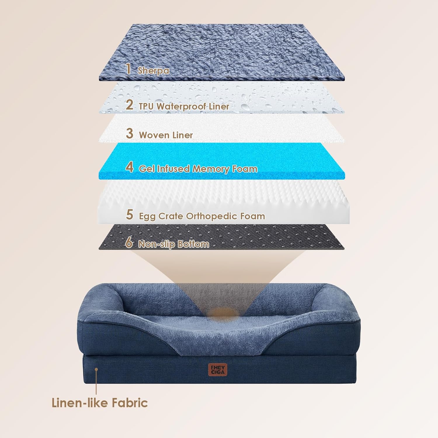 - WATERPROOF PROTECTION: A waterproof layer shields the plush fleece top from the sturdy base fabric, keeping the dog couch dry. Yet, the faux linen sides are not waterproof.