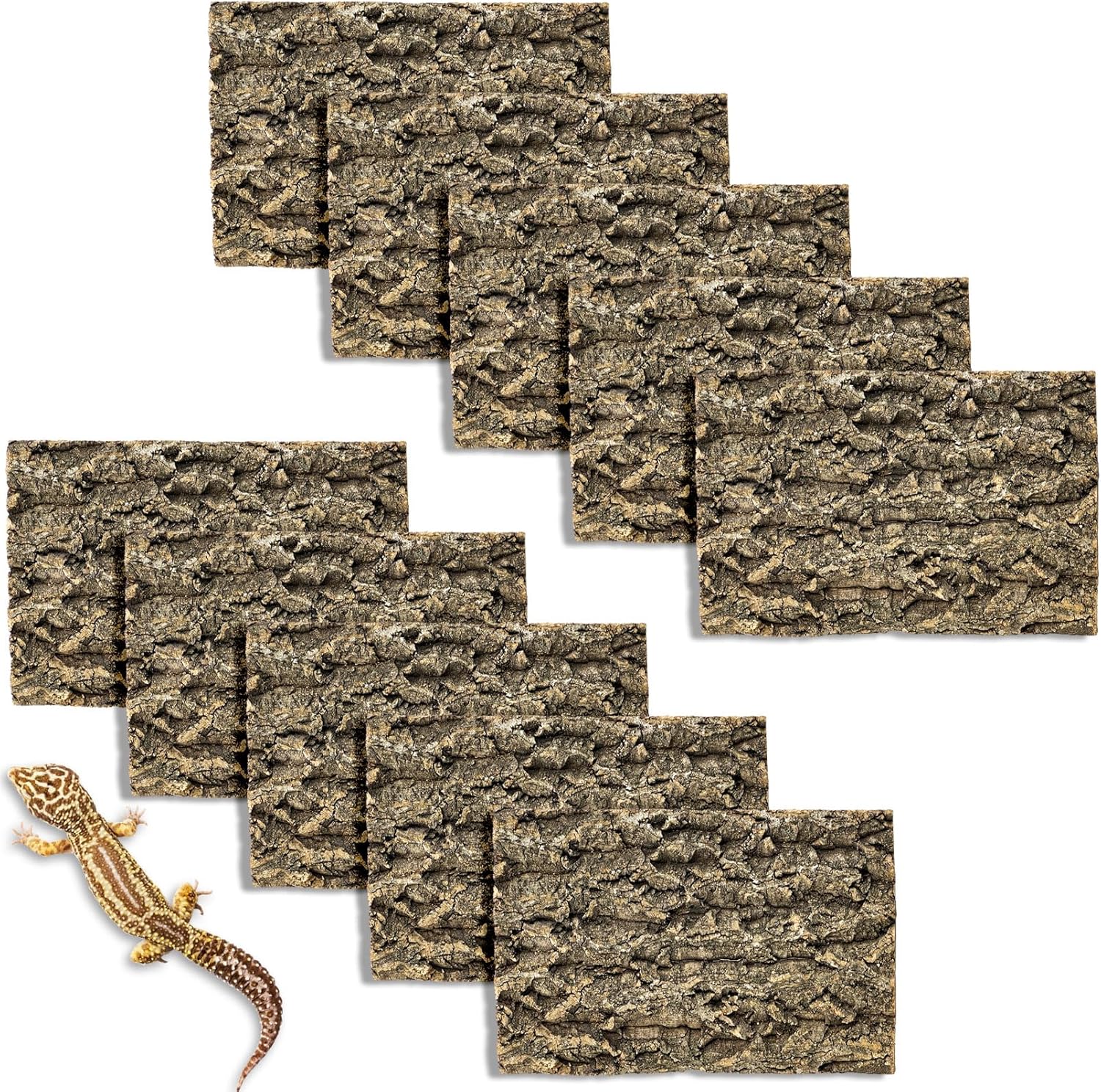 - Natural Cork Bark: Cork bark background is made from natural bark, free of additives and preservatives, with a natural rough texture that is easy for reptiles to climb. Package includes 10 PCS cork bark backdrop
