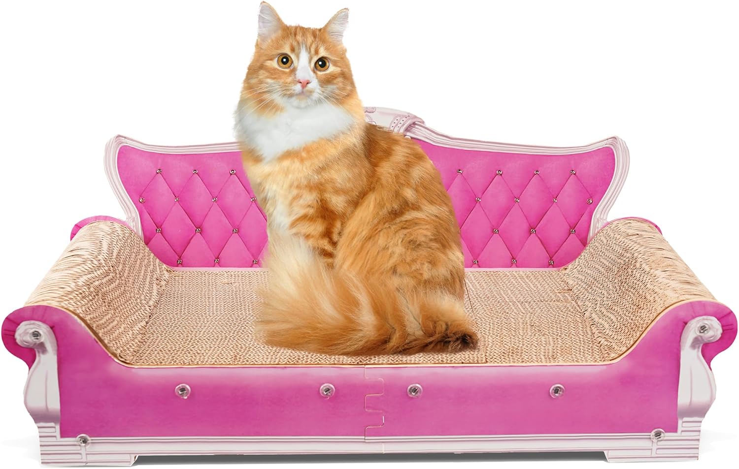 Scratching Sofa, Couch Shaped Thick Scratching Cardboard, Lounge Bed for Indoor Rest&Play, Sofa Scratcher Pad (Pink, 27.6" L X 12.4" W X 11.8" H)