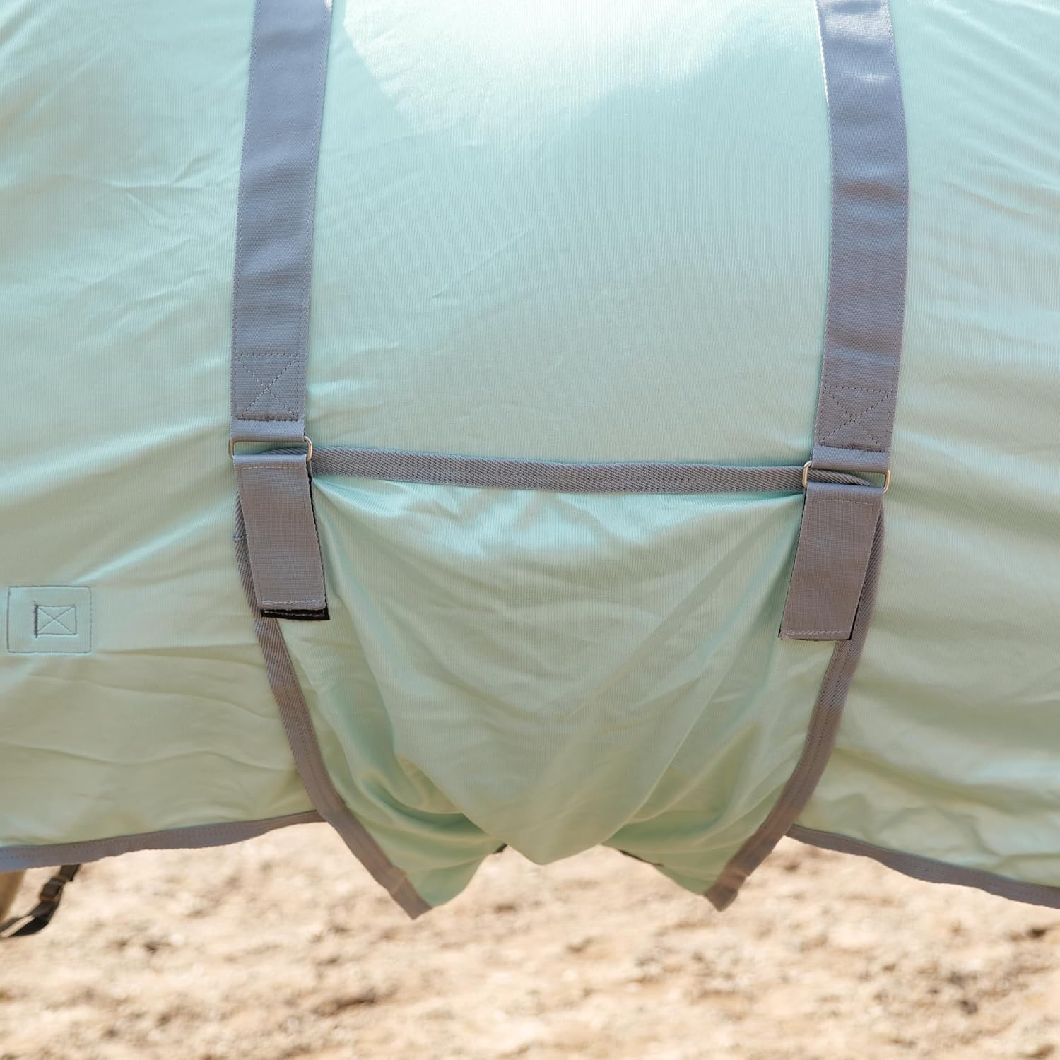Horse Fly Sheet with Detachable Neck Cover & Belly Wrap, Adjustable Fly Sheet for Horses, Ventilated Airflow Mesh Equine Cooling Summer Flysheet Green 69