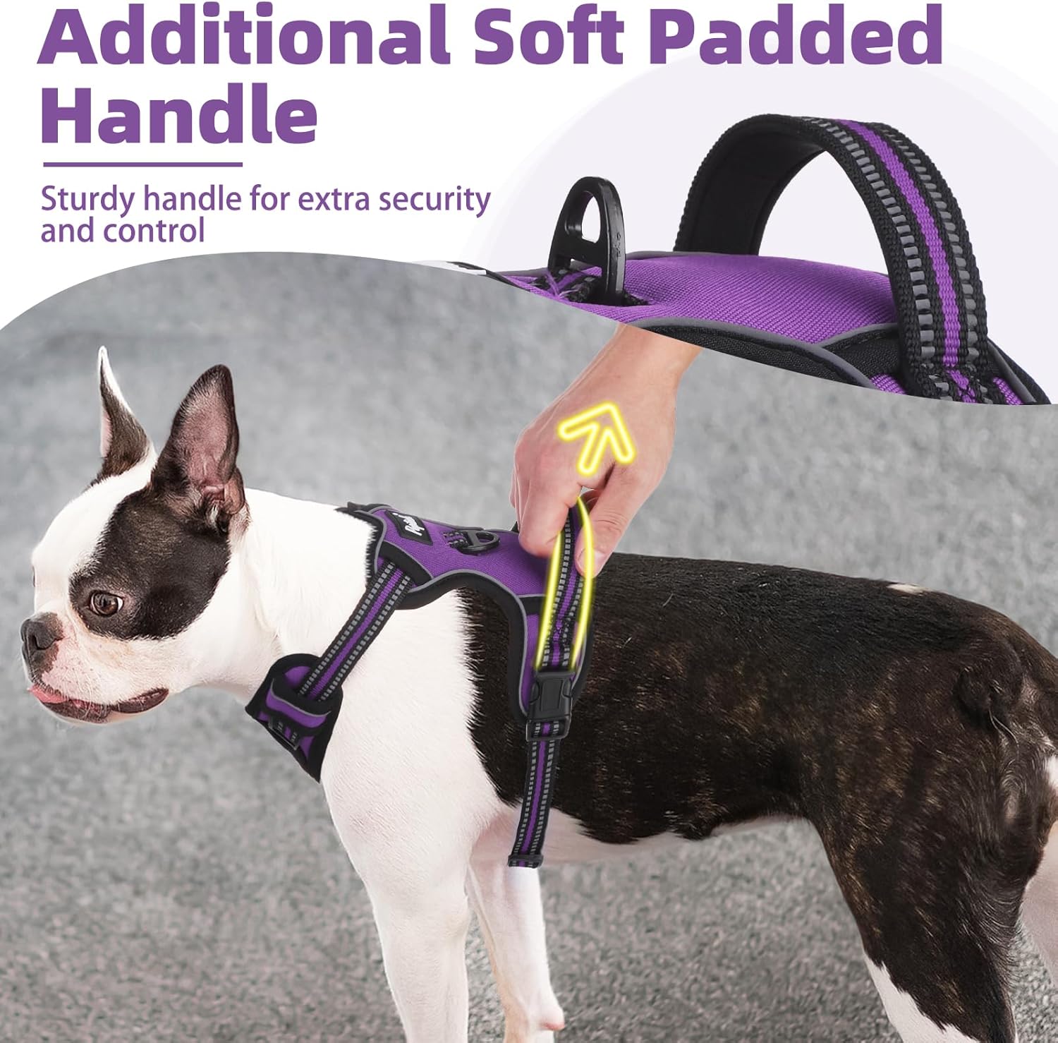 PUPTECK No Pull Dog Harness for Large, Adjustable Reflective Dog Harness with Handle Easy Control, Comfortable Soft Padded Pet Vest Harness for Extra Large Dogs, Solid Purple XL