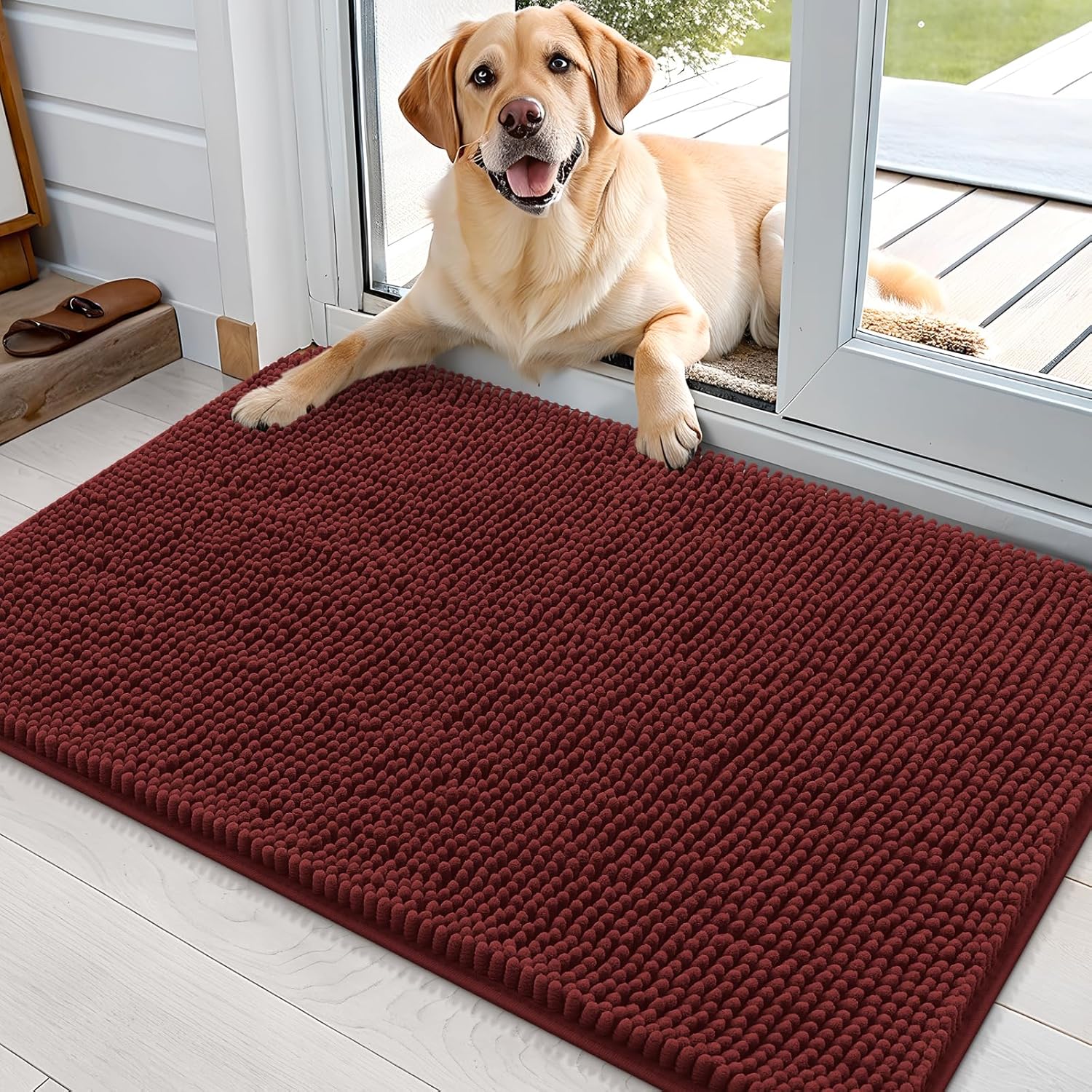 - [LOW PROFILE AND EASY CARE] OLANLY's Chenille Dog Door Mat boasts a slim 1-inch profile, offering a sleek and streamlined appearance. The thoughtful design ensures your doors won't get stuck, and the mat stays securely in place. Cleaning is a breeze – simply shake off any dirt or debris, or toss it in the washing machine for a deeper clean. It dries quickly, so you can be sure it's ready to use again in no time.