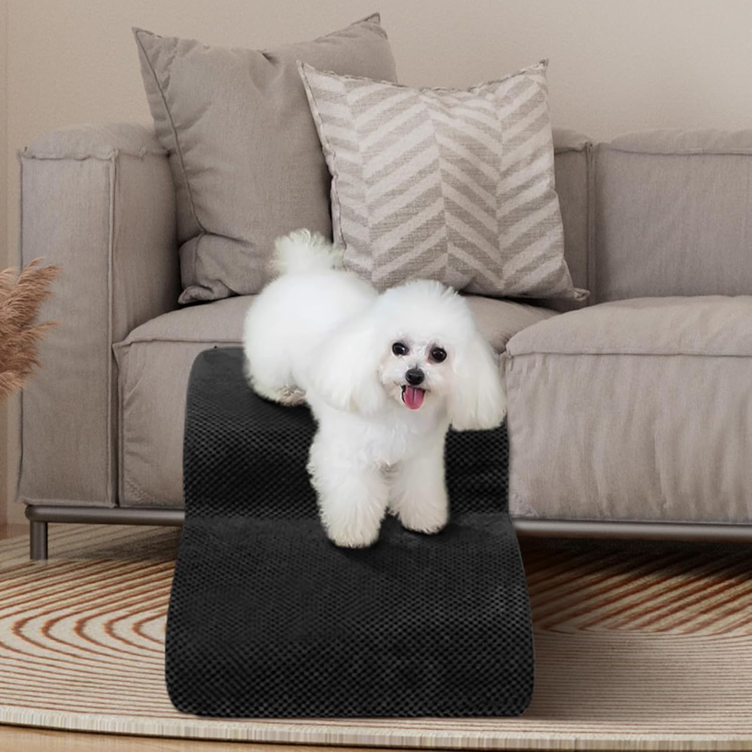 Dog Stairs for Small Dogs - High Density Foam Pet Steps, Extra Wide Dog Ramp with Non-Slip Bottom for High Beds, Couch and Sofa, Best for Dogs Injured, Older Doggy Cats,2 Steps, Black