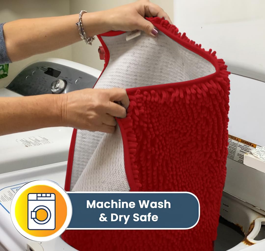 Muddy Mat® AS-SEEN-ON-TV Highly Absorbent Microfiber Door Mat and Pet Rug, Non Slip Thick Washable Area and Bath Mat Soft Chenille for Kitchen Bathroom Bedroom Indoor and Outdoor - Red 5ft x 7ft