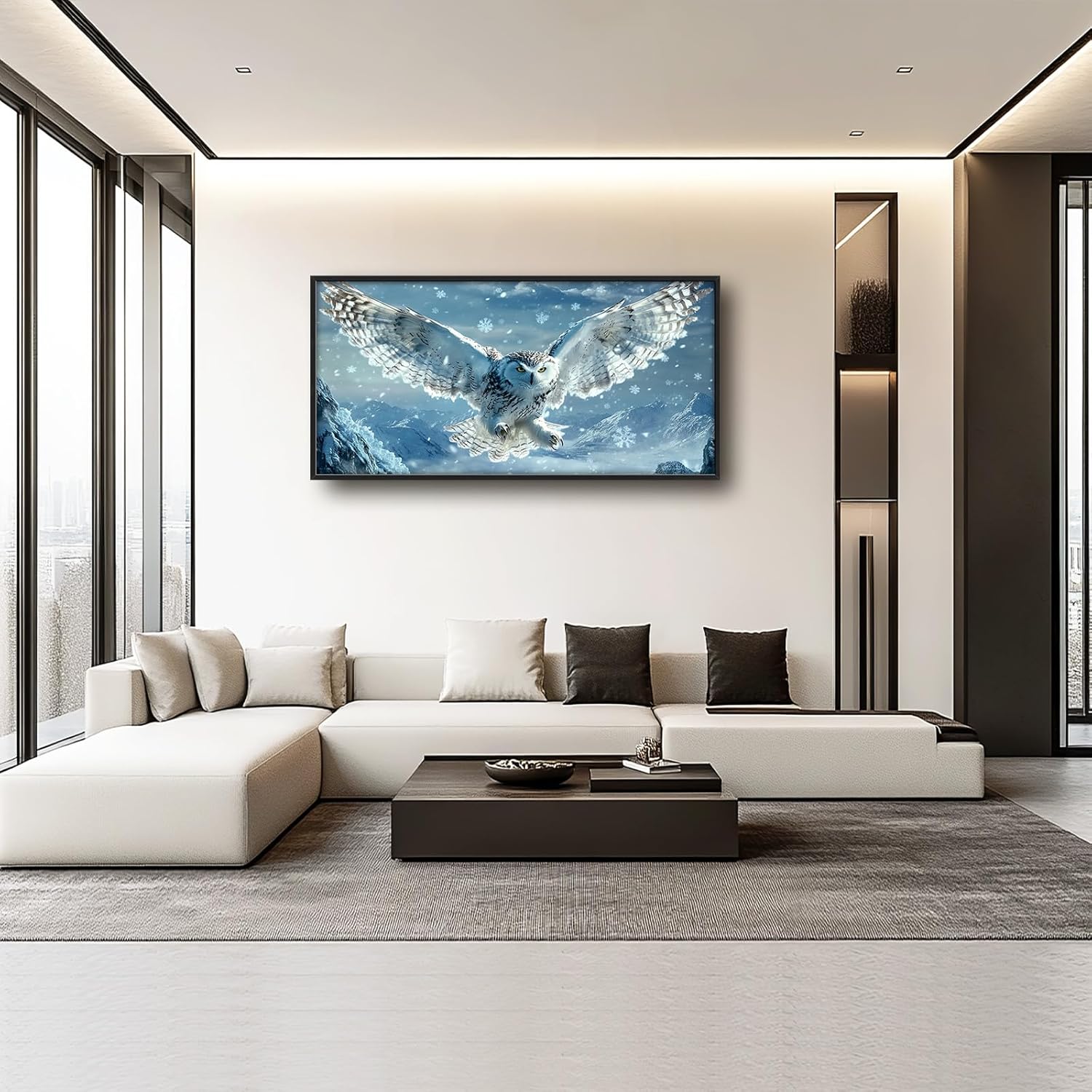 Framed Large Snowy Owl Wall Art for Living Room, Oversized Snowy Mountain Wall Decor Landscape Canvas Painting Modern Artwork Home Decoration for Living Room Bedroom Office 60"x30"