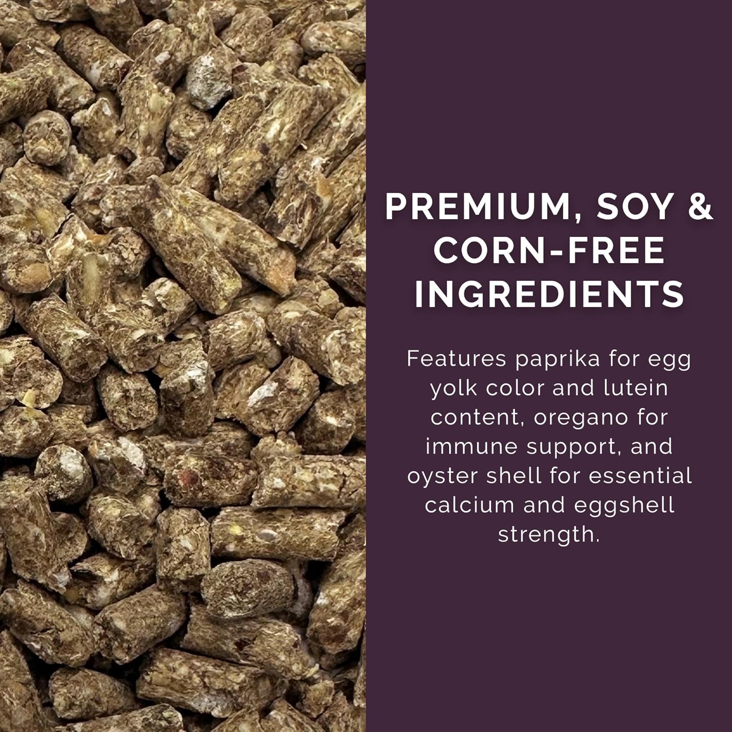 - Premium, Soy & Corn-Free Ingredients: Features paprika for egg yolk color and lutein content, oregano for immune support, and oyster shell for essential calcium and eggshell strength.