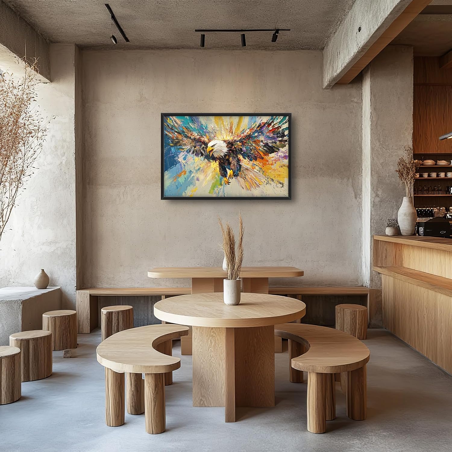 Framed Large Eagle Wall Art, Oversized Bald Wall Decor for Living Room, Colorful Wildlife Animal Canvas Painting Pictures Modern Artwork Home Decoration for Living Room Bedroom Office 36"x24"