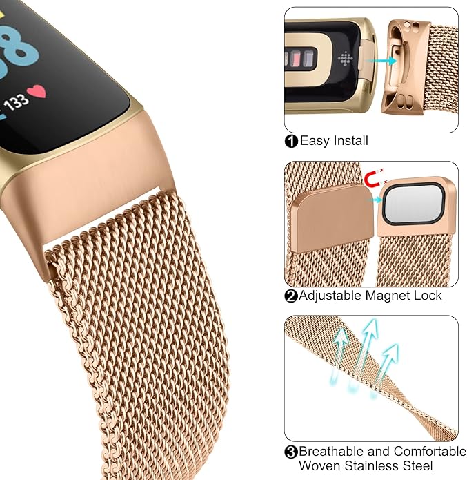 - 【COMFORTABLE MATERIAL】These Fitbit Charge 6 bands are made of fashionable & durable woven mesh stainless steel. Mesh Design makes this band more breathable and lightweight. It bring you a elegant and comfortable wearing experience, personalize your Fitbit Charge 6 Fitness Tracker. Very soft and comfortable to wear.