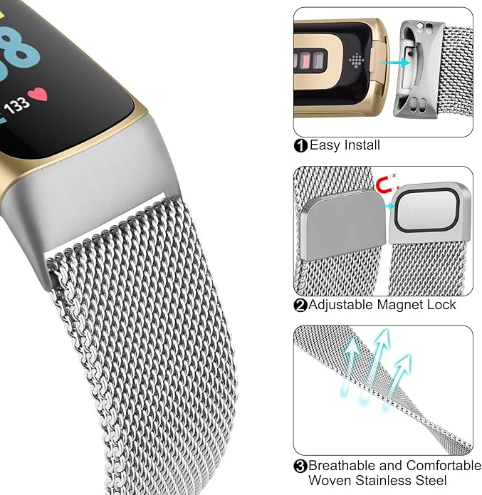 • 【COMFORTABLE MATERIAL】These Fitbit Charge 6 bands are made of fashionable & durable woven mesh stainless steel. Mesh Design makes this band more breathable and lightweight. It bring you a elegant and comfortable wearing experience, personalize your Fitbit Charge 6 Fitness Tracker. Very soft and comfortable to wear.