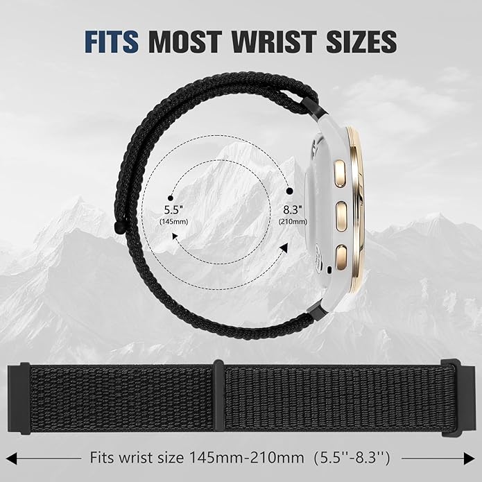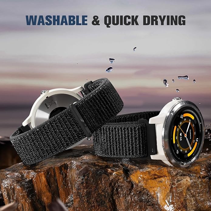 • Ultra-Comfort Breathable Nylon Strap: Engineered with premium moisture-wicking nylon, this featherlight replacement sport 22mm watch band contours to your wrist with cloud-like softness. Its advanced airflow weave technology actively combats sweat accumulation, maintaining all-day freshness whether you're crushing workouts or navigating daily tasks