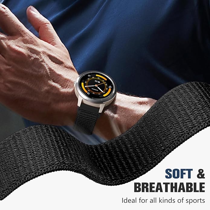 18mm 20mm 22mm Hook and Loop Watch Band Compatible with Garmin Vivoactive 5/ Vivoactive 6/ Vivoactive 3, Soft Nylon Breathable Sport Strap for Venu 2S/ Venu3S/ Forerunner 265s,Venu 3/ Venu 2 Men Women