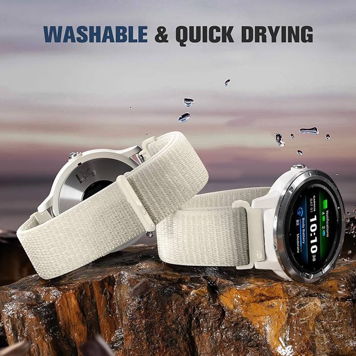 - Ultra-Comfort Breathable Nylon Strap: Engineered with premium moisture-wicking nylon, this featherlight replacement sport 22mm watch band contours to your wrist with cloud-like softness. Its advanced airflow weave technology actively combats sweat accumulation, maintaining all-day freshness whether you're crushing workouts or navigating daily tasks