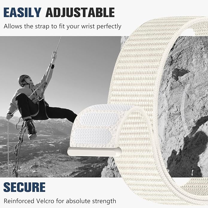 - Ultra-Secure Adjustable Fit: Say goodbye to slipping watch bands! Our Vel-cro closure provides a fully customizable fit (5.5"–8.3" wrist size) with micro-adjustability for the perfect snugness. The reinforced stitching and high-grip hook-and-loop design ensure your smartwatch stays firmly in place, whether you're running, lifting weights, or swimming. No more readjusting mid-workout—this strap locks securely while remaining easy to reposition