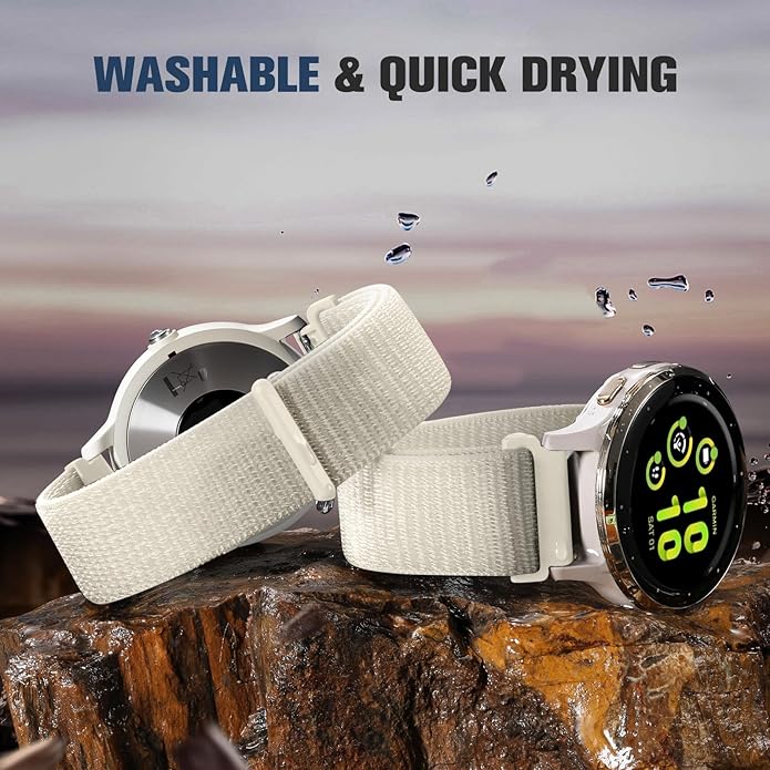 - Ultra-Comfort Breathable Nylon Strap: Engineered with premium moisture-wicking nylon, this featherlight replacement sport 20mm watch band contours to your wrist with cloud-like softness. Its advanced airflow weave technology actively combats sweat accumulation, maintaining all-day freshness whether you're crushing workouts or navigating daily tasks
