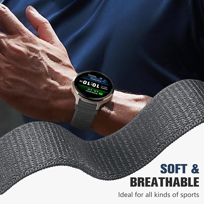 18mm 20mm 22mm Hook and Loop Watch Band Compatible with Garmin Vivoactive 5/ Vivoactive 6/ Vivoactive 3, Soft Nylon Breathable Sport Strap for Venu 2S/ Venu3S/ Forerunner 265s,Venu 3/ Venu 2 Men Women