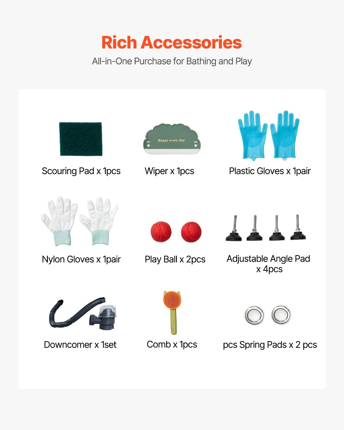 - Complete Accessories: The pet washing sink comes with a showerhead, faucet, and a direct connection to a home hose for durability. It also includes a cleaning cloth, squeegee, play ball, brush, and gloves, ensuring your pet enjoys the full bathing experience