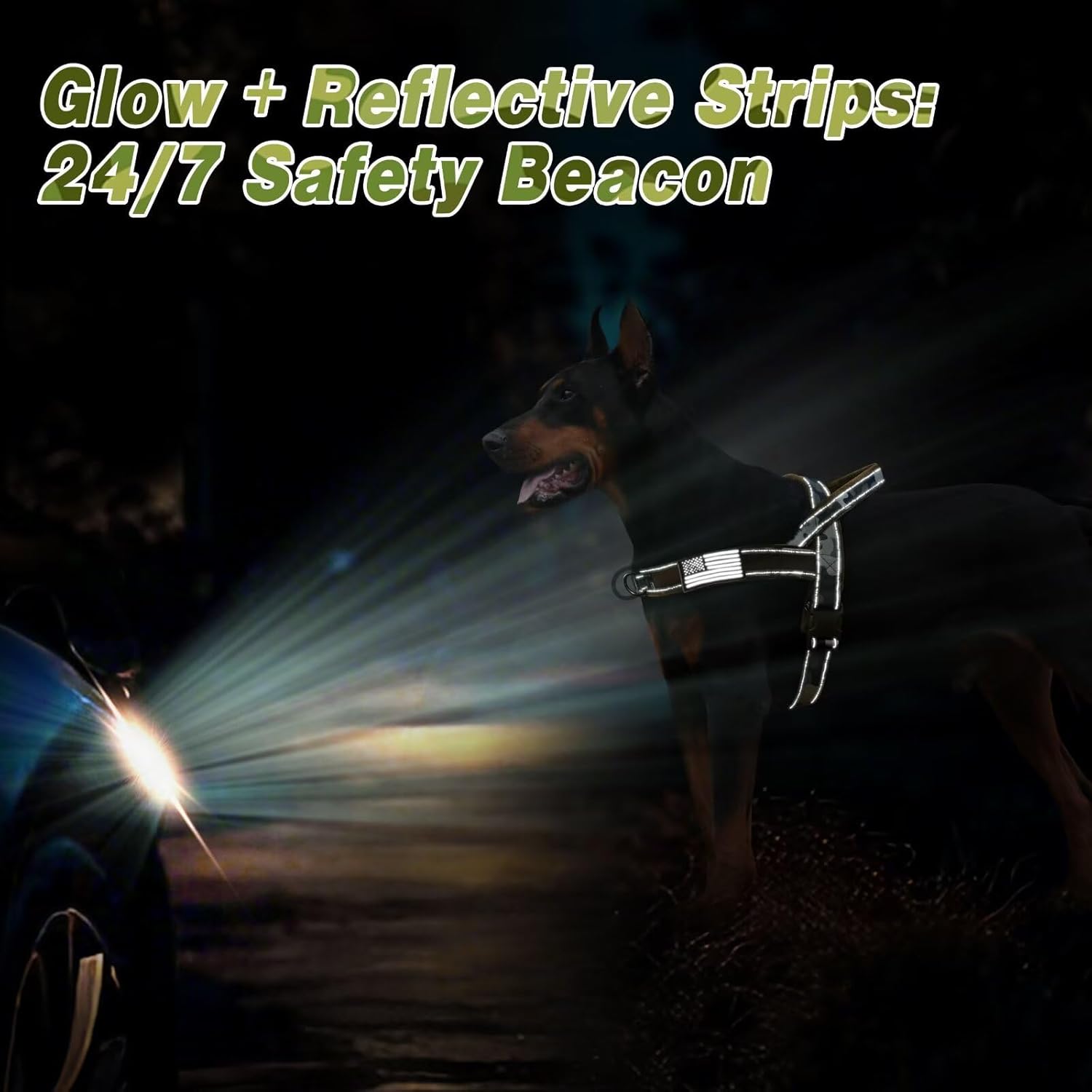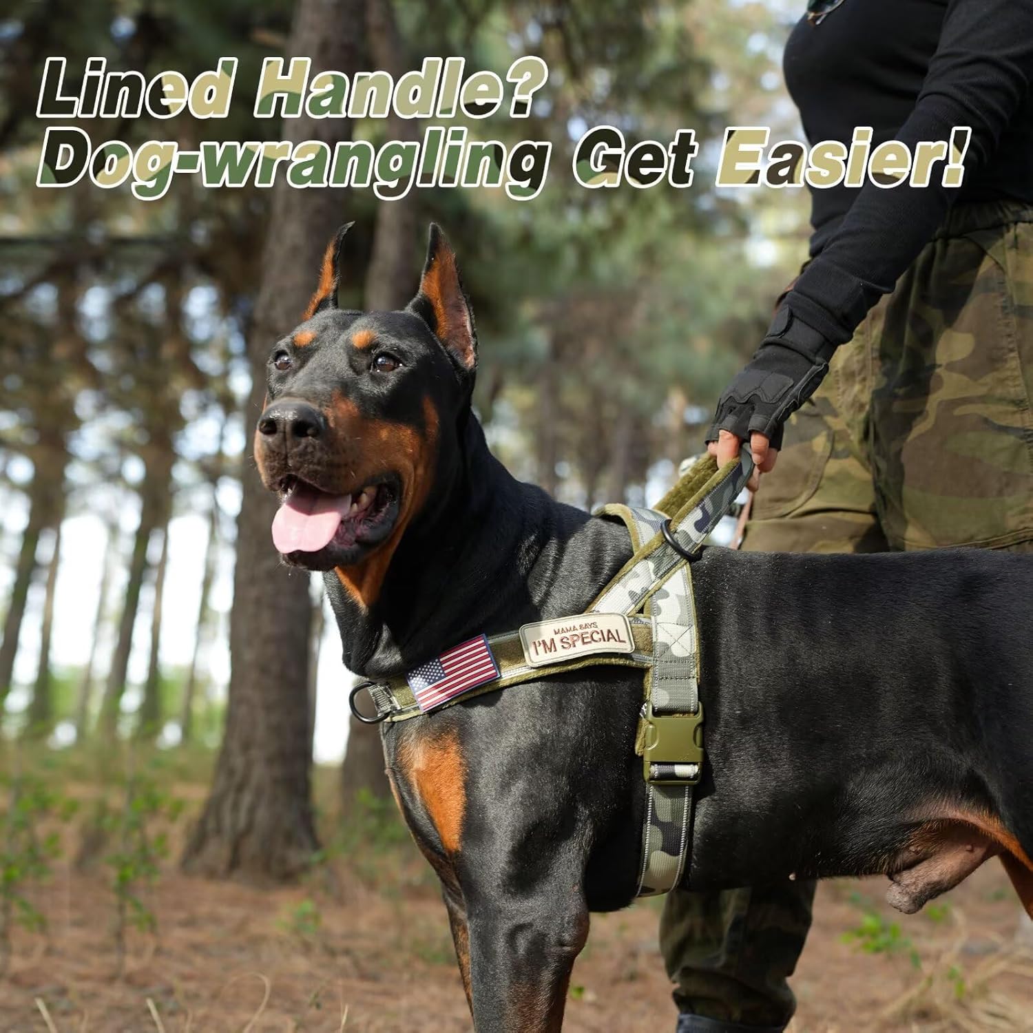 Forestpaw No Pull Dog Harness - Soft Flannel Padded Tactical Dog Vest Harness with Quick Release Buckle, Adjustable Reflective Pet Harness for Large Dogs Walking Training,Green Camouflage L