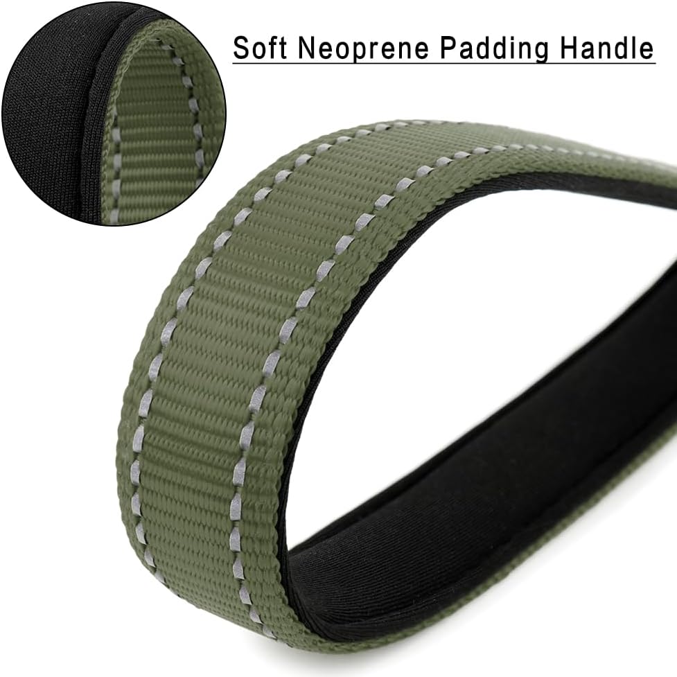 PLUTUS PET Short Dog Leash, Reflective Nylon Padded Handle, Strong Traffic Leash with Carabiner Clip, Perfect for Large or Medium Dogs (10”,Ranger Green)