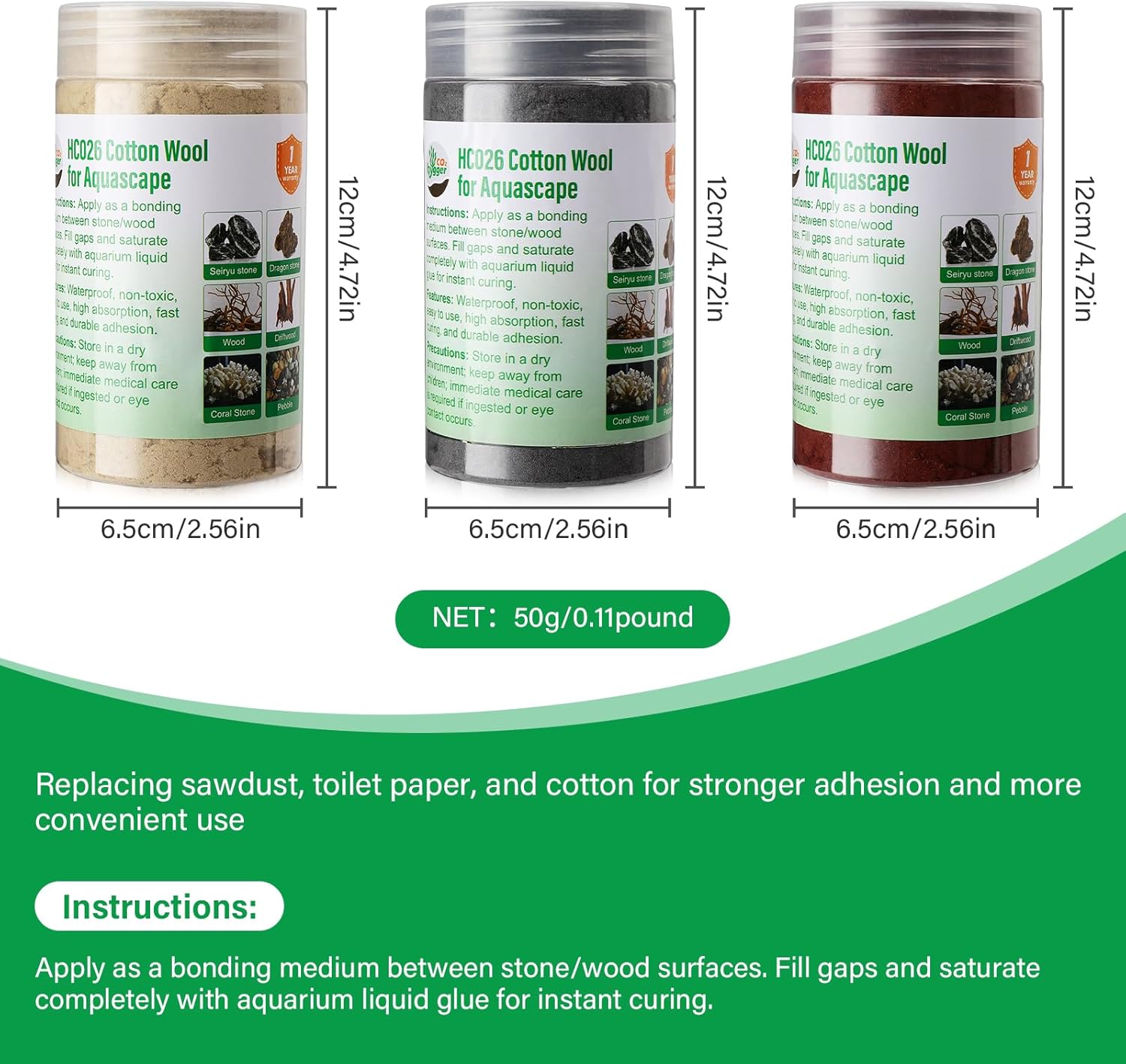 - Professional Bonding and Filling:This product is specially designed for aquarium landscaping and is recommended to be used with aquatic liquid glue. When bonding rocks or driftwood, uneven surfaces may result in insufficient contact area and weak adhesion. Simply add a small amount of this bonding medium cotton between the bonding surfaces to fill gaps and increase contact area. After saturating it with liquid glue, the bond will solidify into an ultra-strong hold, ensuring a durable and stable aquascape structure.