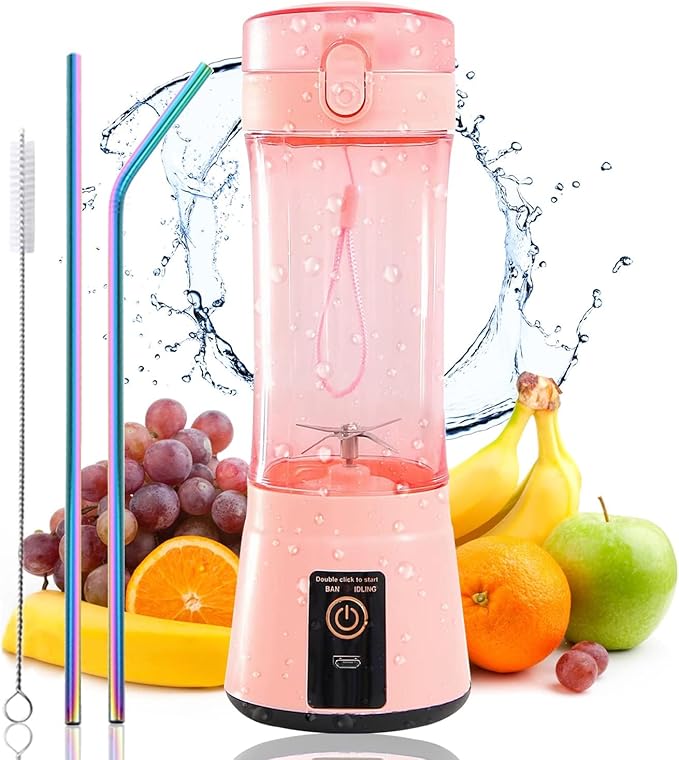 13.5oz Portable Blender for Smoothies, Shakes, and Juices - USB Rechargeable Mini Blender Cup With Protection Design for Home, Office, Outdoors - Multi-purpose Pink A4221