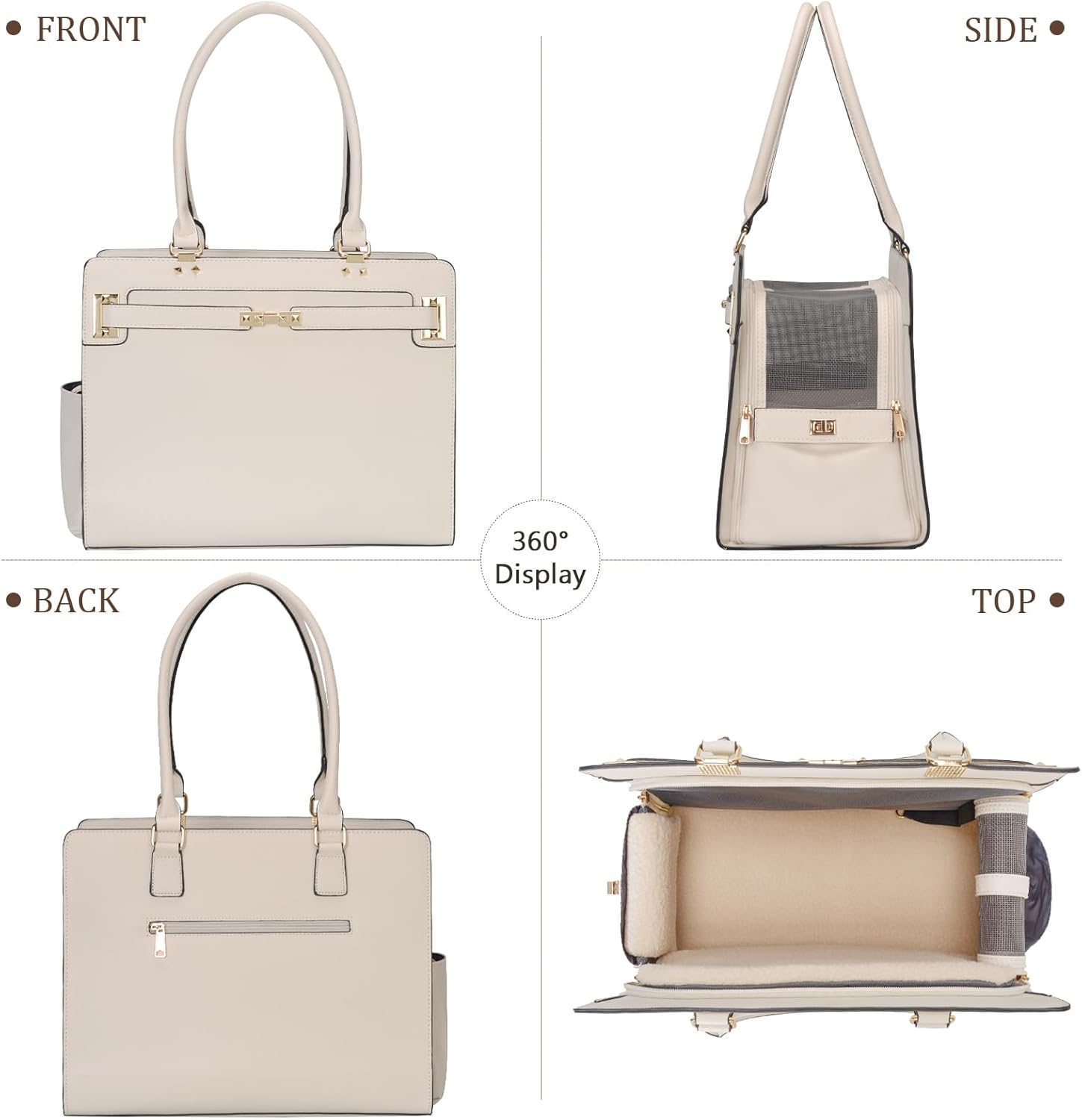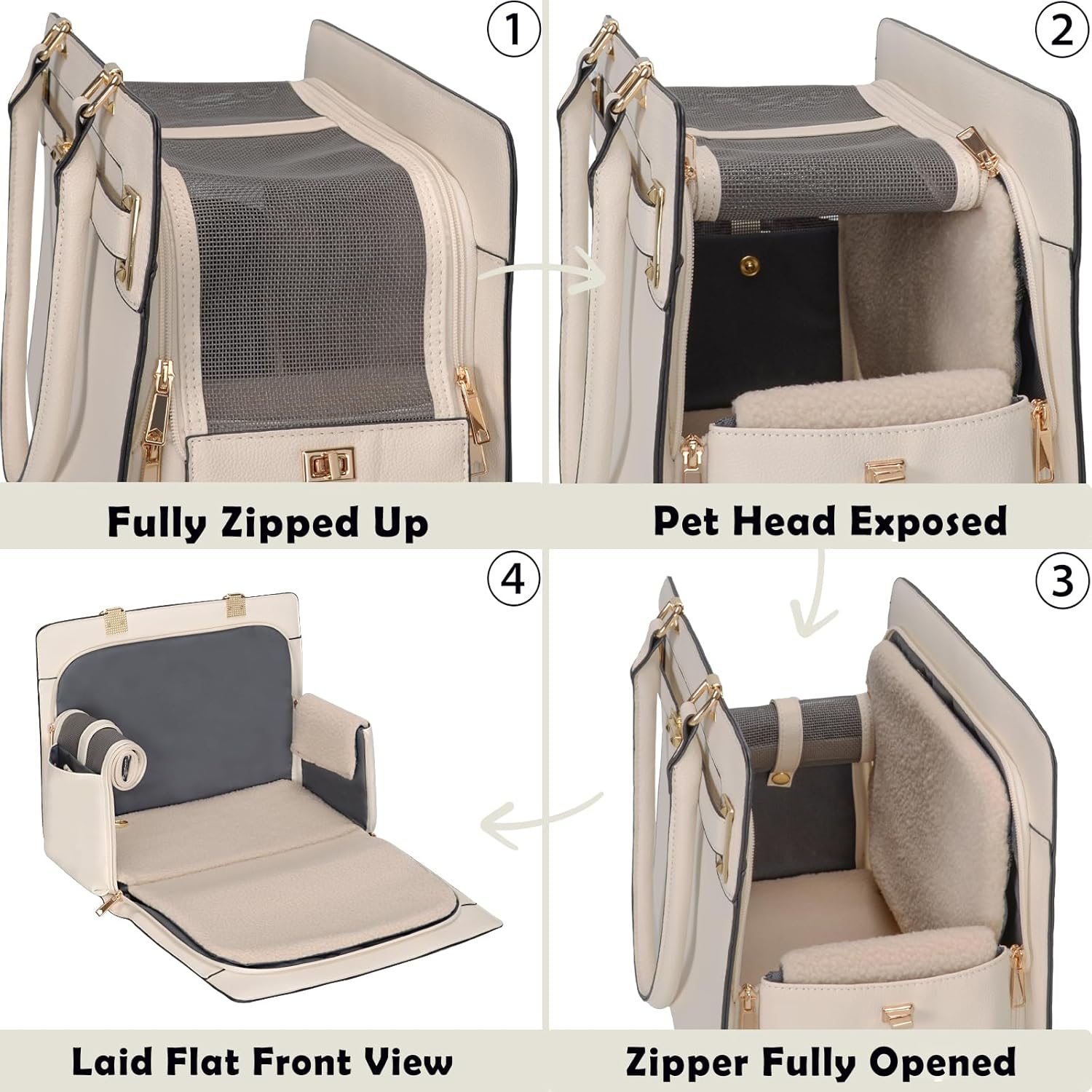 2-in-1 Stylish Dog Purse Carrier Soft-Sided Carriers Travel Tote Bag for Small Dogs Cats, Fashion Foldable Pet Bag for Puppies Small Animals with Pockets (White, 15" L x 7.5" W x 12.2" H)