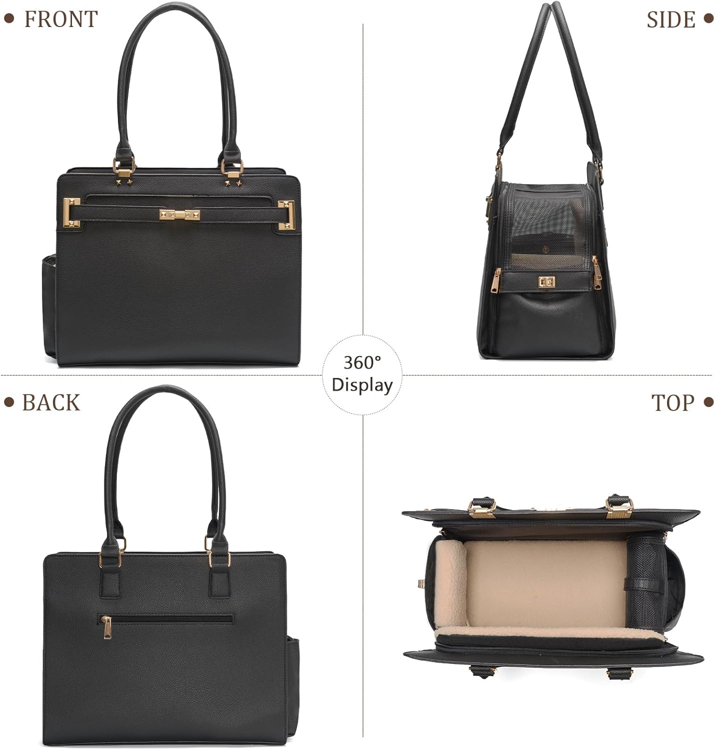 2-in-1 Stylish Dog Purse Carrier Soft-Sided Carriers Travel Tote Bag for Small Dogs Cats, Fashion Foldable Pet Bag for Puppies Small Animals with Pockets (Black, 15" L x 7.5" W x 12.2" H)