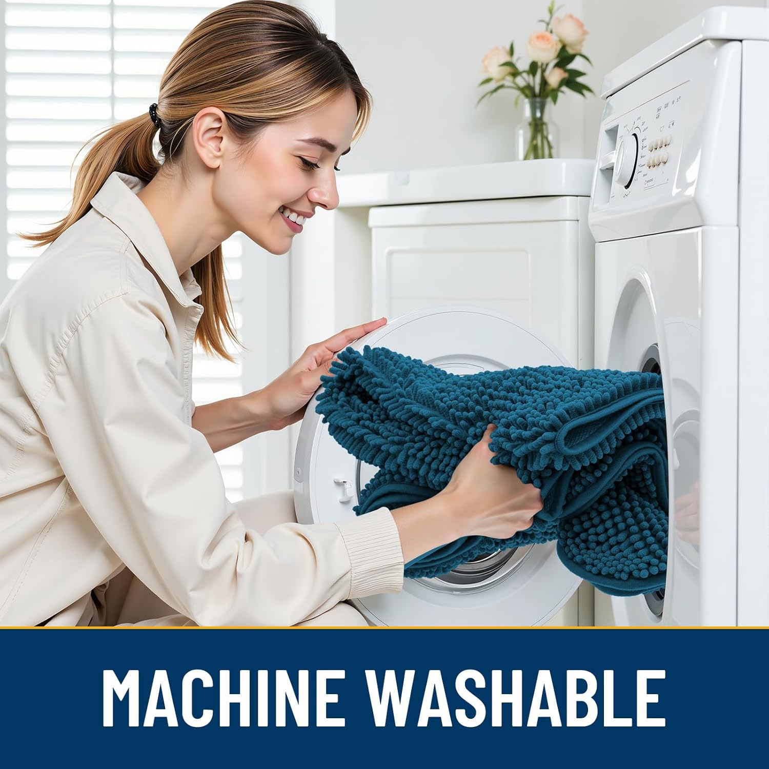Smiry Dog Door Mat for Muddy Paws 47x32, Absorbs Moisture and Dirt Doormat, Non-Slip Washable Quick Dry Chenille Front Door Mat Indoor Entrance, Entryway Carpet for Inside Floor, Atlantic Blue
