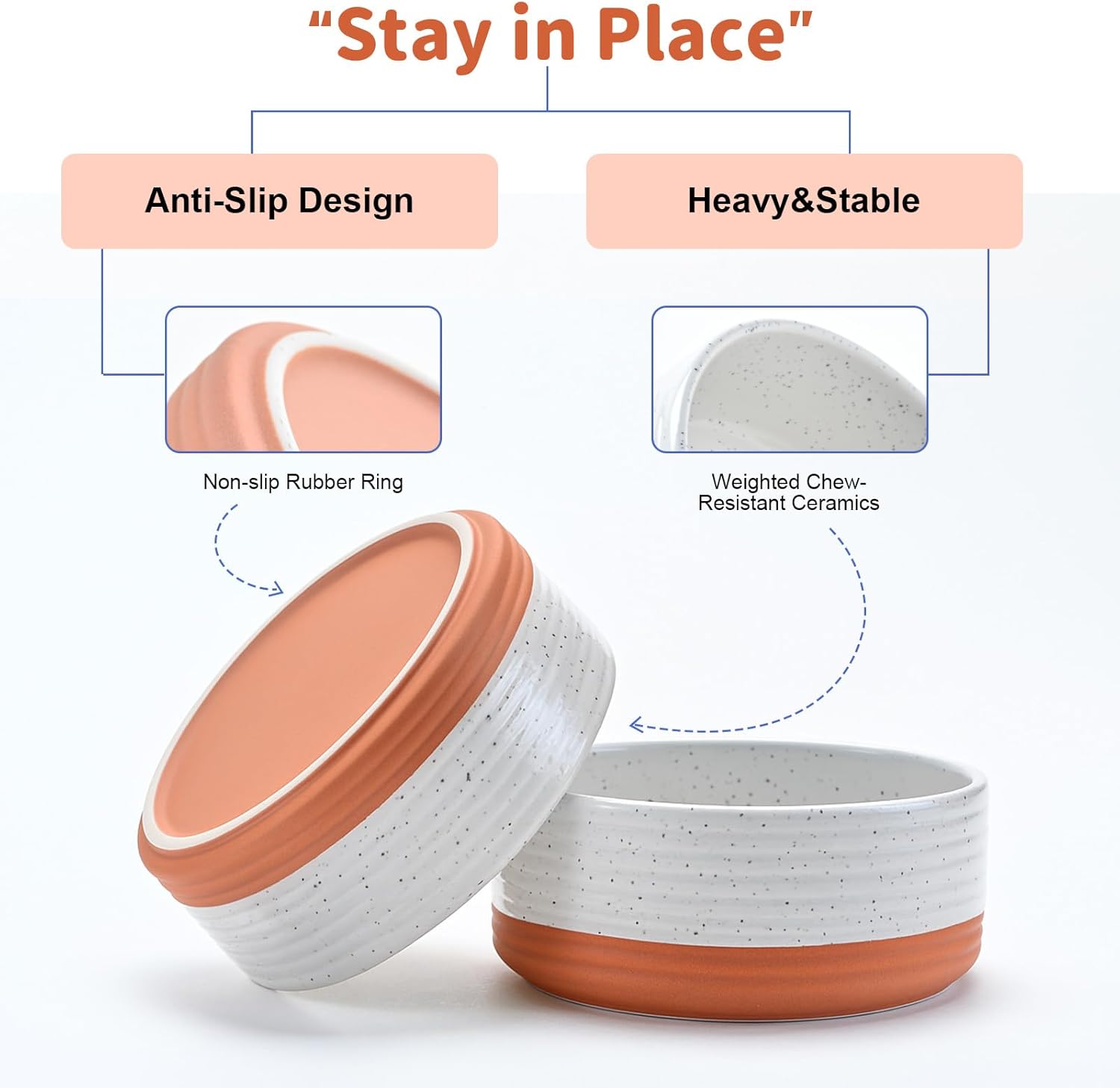 - Heavyweight, Chew‑Resistant Ceramic – Thick and Durable ceramic delivers the heft needed to prevent dragging, tipping, and the clanging noise common like other stainless bowls, while the smooth, lead‑free glaze discourages chewing and stands up to daily use