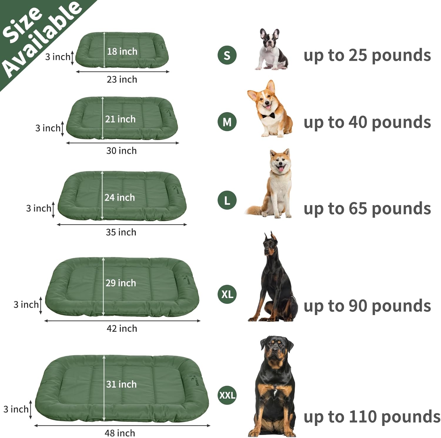 KHONSU PET Durable Dog Bed Tough and Tear Proof Dog Crate Bed, 800lbs Tear Strength PVC-Backed Waterproof Ped Bed Mat Indoor & Outdoor Use for Dogs up to 60 lbs