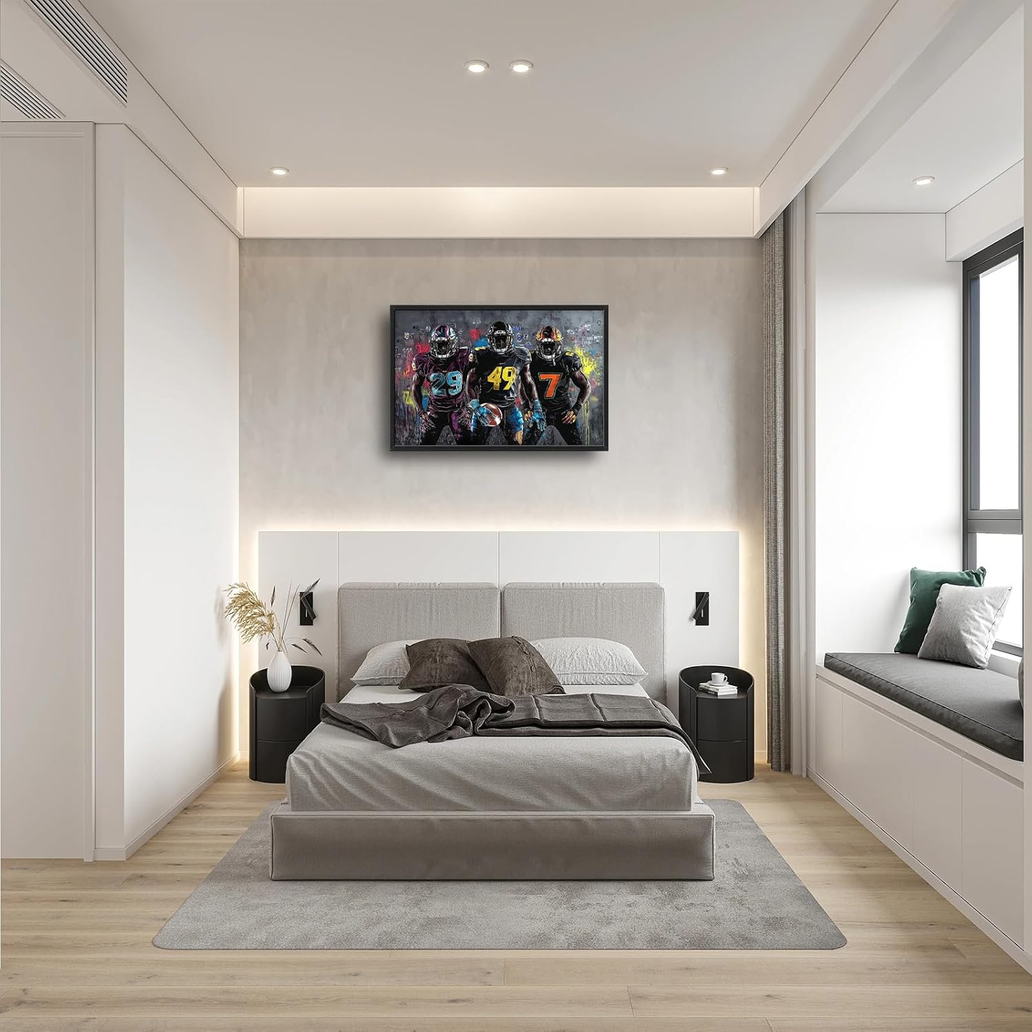 Large Rugby Player Wall Art for Living Room, Framed Oversized Graffiti Sport Wall Decor Cool Canvas Painting Pictures for Men Modern Artwork for Living Room Bathroom Bedroom Office Dining Room 36"x24"