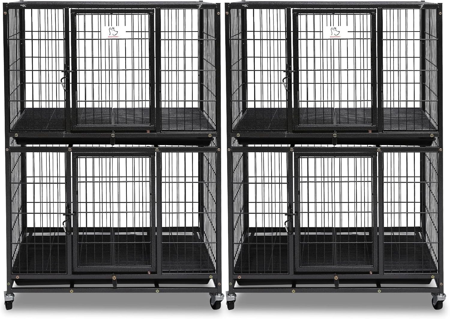 Homey Pet Two Packs 31 Inch Stackable Heavy Duty Dog Crate Cage Kennel with Four Lockable Wheels, Removable Tray, Escape Proof Wire Drop Dog Crates for Small Dogs (Two Tiers)