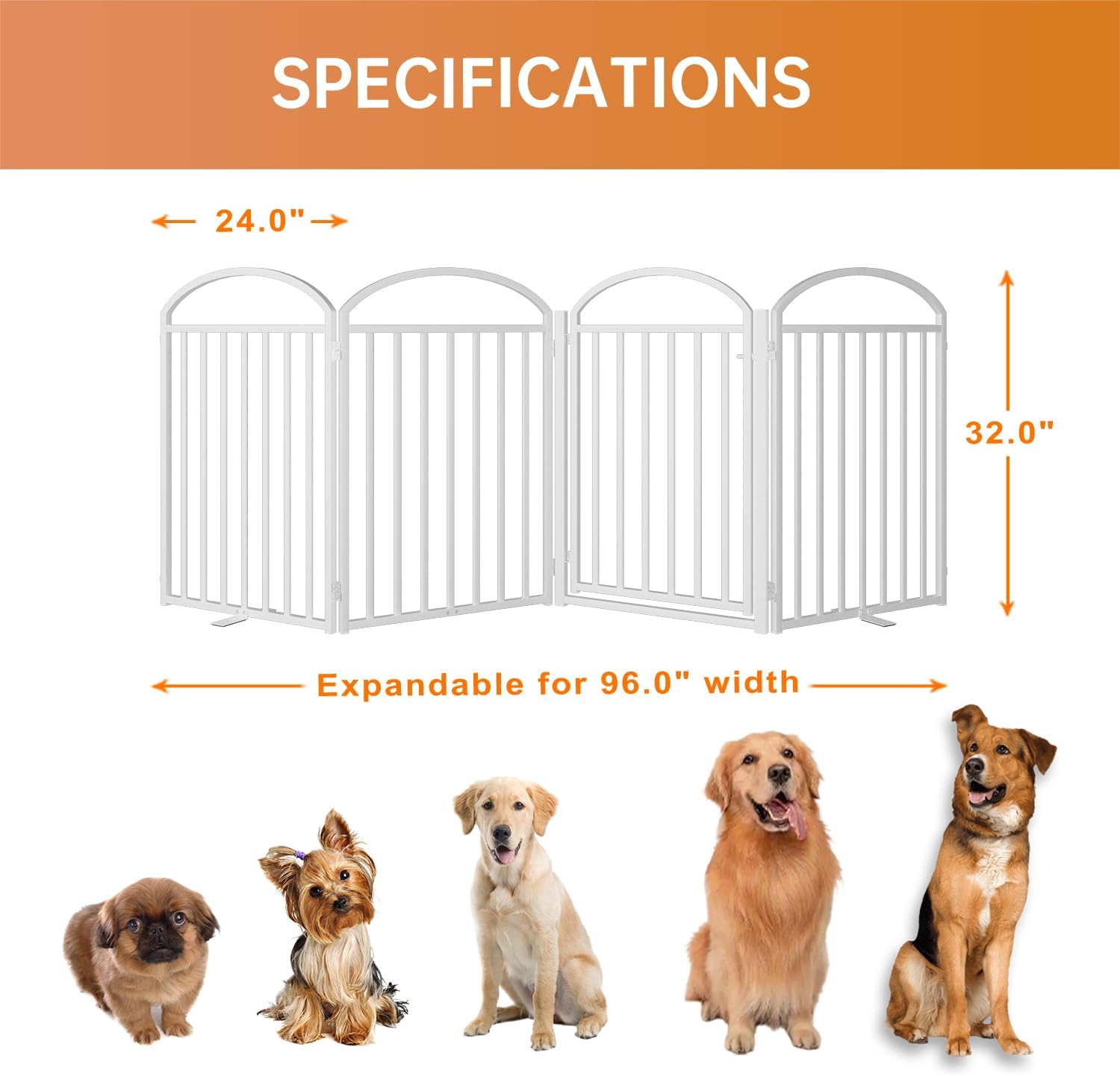 4 Panles Full Matel Freestanding Dog Gates with Door, 96"Extra Wide 32"Tall Free Standing Dog Pet Gate for Indoor & Outdoor. Foldable Pet Fences for Doorways, House, Stairs, Porch, Deck, Yard