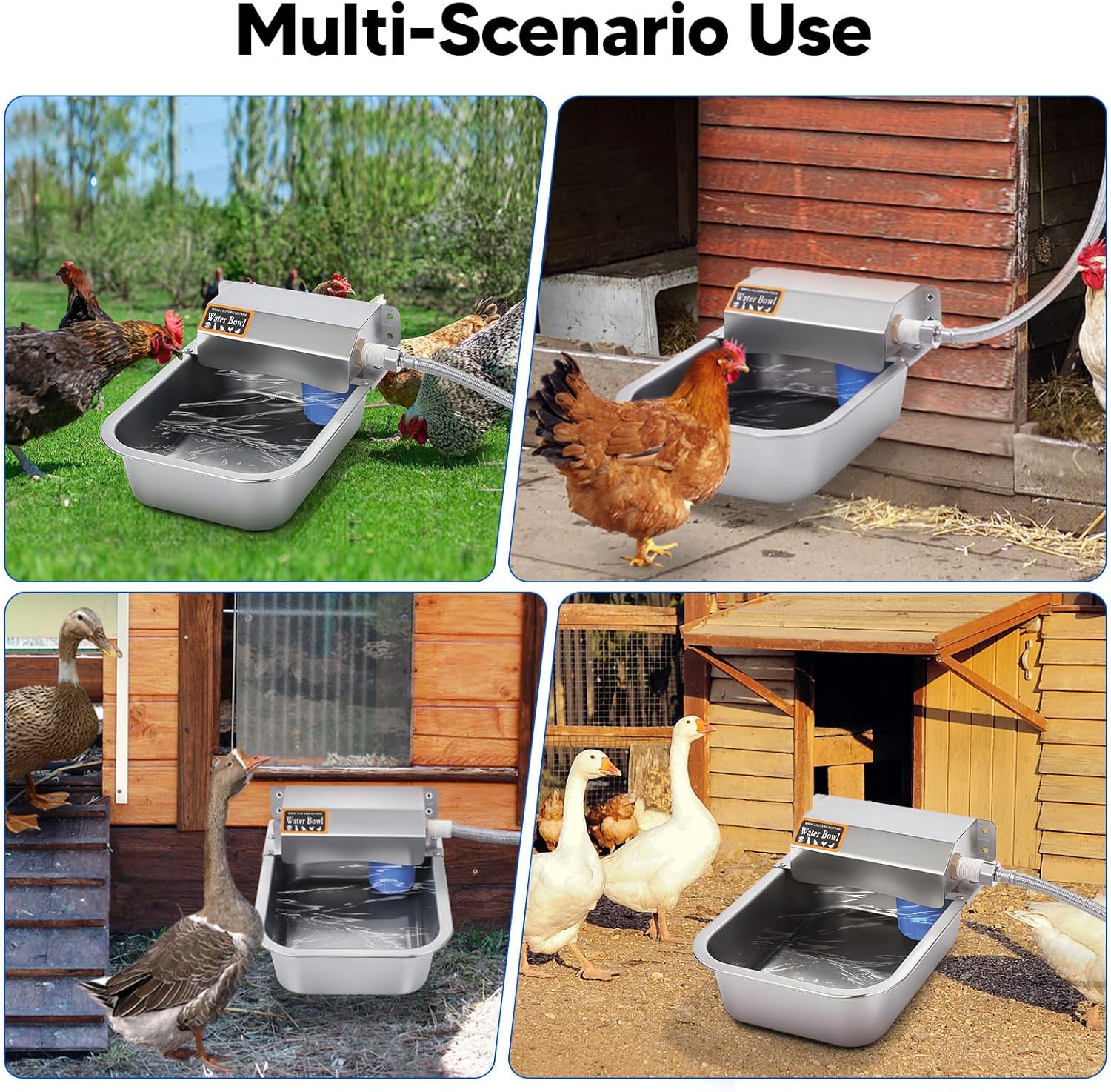 - STRONG APPLICABILITY: The automatic water dispenser adopts a wide mouth design, which is very suitable for dogs, chickens, ducks, poultry, horses, cattle, sheep, and other large animals to drink water, and is suitable for installation in yards, farms and pastures and other places