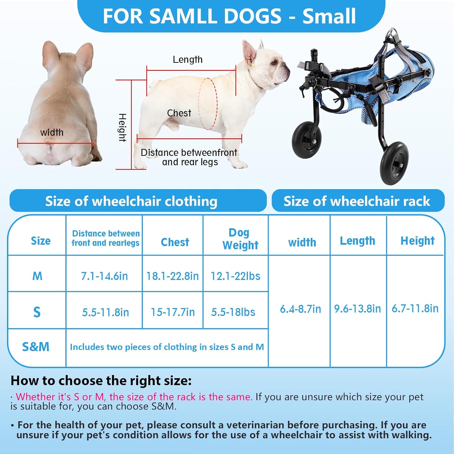 - Lightweight, Durable, Easy Installation- The pet wheelchair for back legs only 1.5 pounds and is made of lightweight and durable materials. The small dog wheelchair provide stable and comfortable for injured dogs, allowing them to move easily. The wheel chair for dog also comes with clear instructions to ensure quick and convenient installation