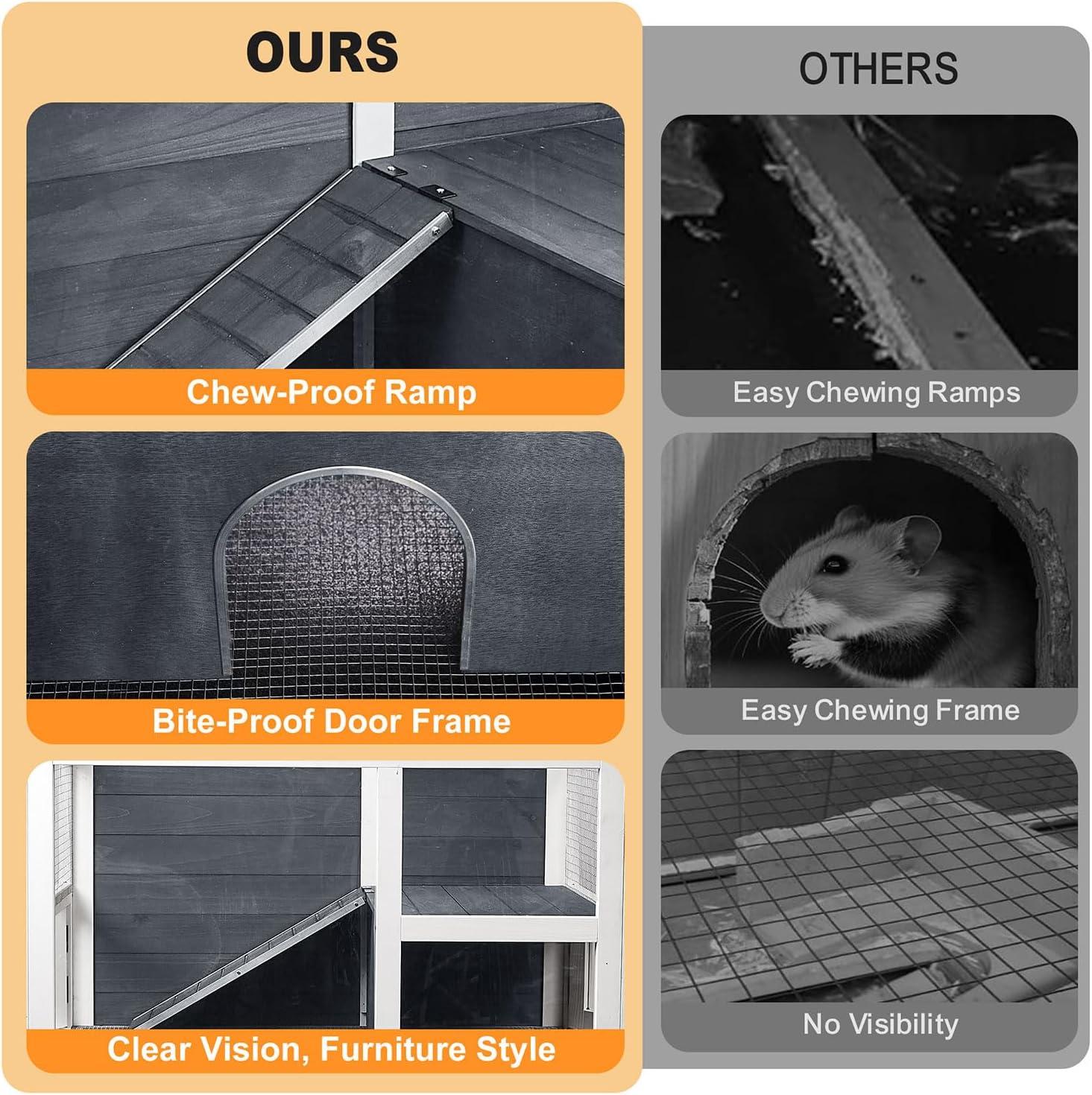 - Acrylic Panels for 270° Visibility: Three transparent acrylic sides allow for full interior viewing while keeping your pets safe and your home stylish. Enjoy watching your pets play and relax without visual barriers.