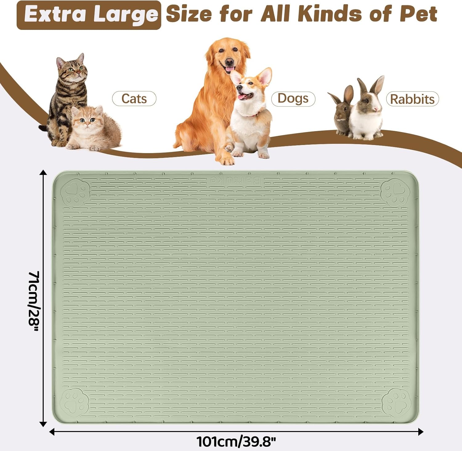 - Large Cat Food Mat: This large 40"x28" (101 x 71cm) cat food mat has enough space for multiple bowls, and perfect for dogs, cats and other pets to eat together, keep paws and floors clean