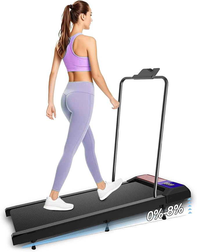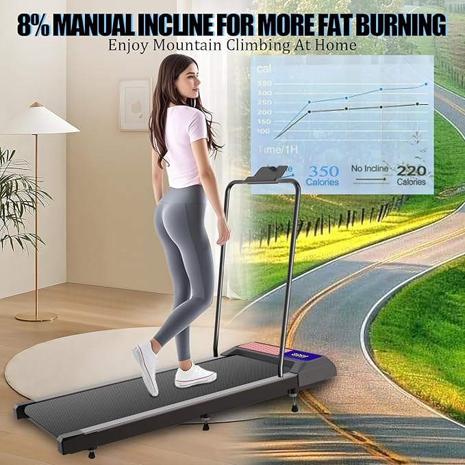 - 【270 lbs Capacity & 5% Incline】Built with a reinforced frame, this compact treadmill supports up to 270 lbs and offers a 8% incline for more effective calorie burning during walking or light jogging.
