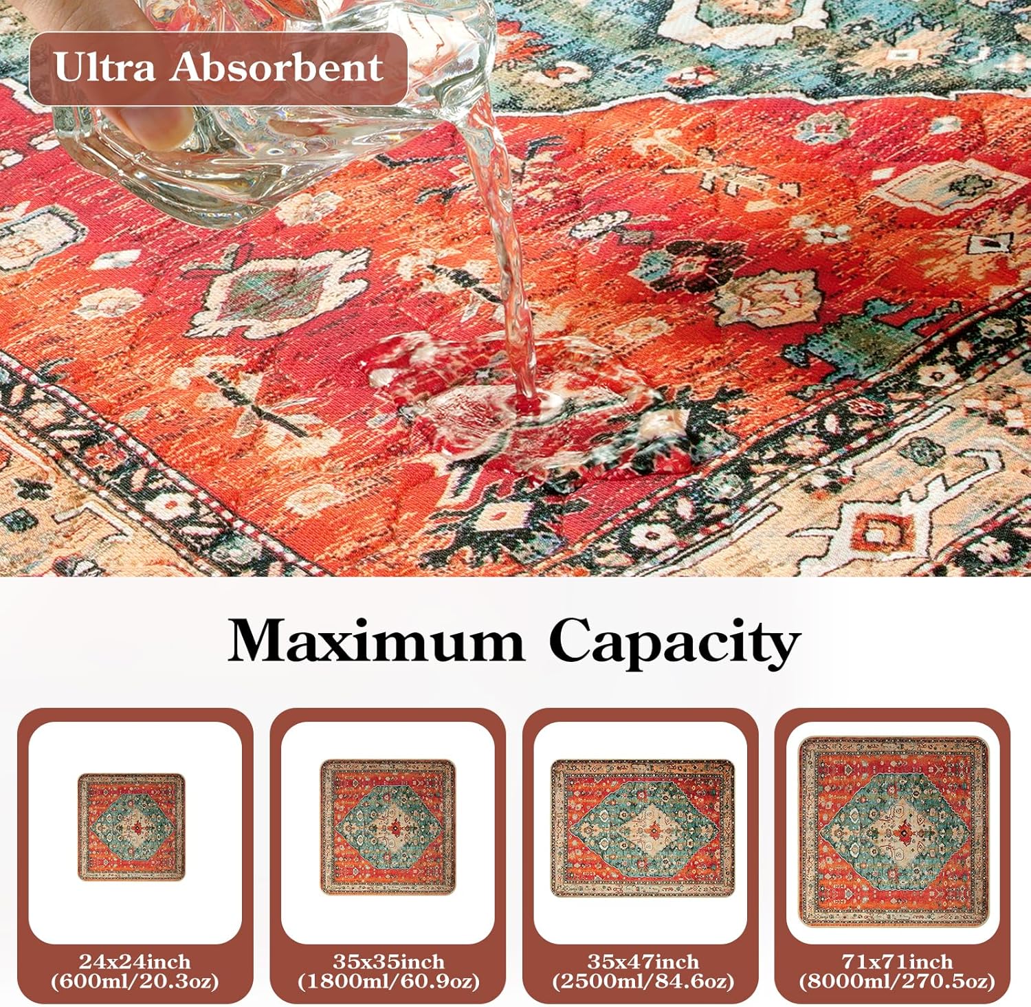 - 4-Layer Protection System: Made of four specialized layers for maximum performance, soft absorbent top layer, quick-drying middle layer, waterproof barrier layer, and non-slip bottom layer. This comprehensive protection system ensures liquids stay contained while the pad remains secure on your floor