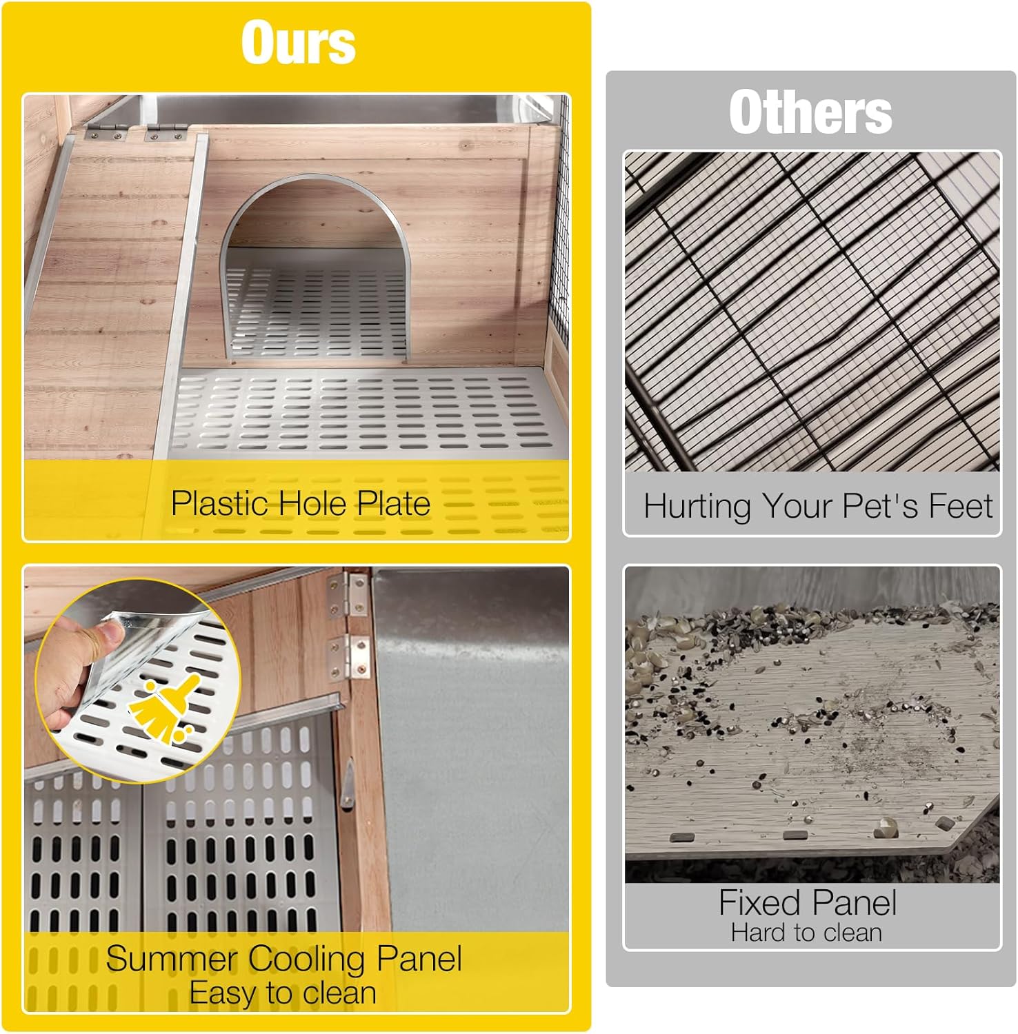 - Easy to Clean: The front and back pull-out deepening trays (with tray lock) and the openable roof also make it more convenient for you to clean the interior easily. Wire mesh that keeps pets from stepping directly on feces