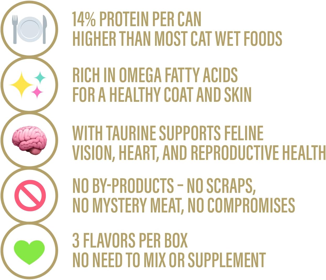 Chewer's Joy Wet Cat Food Variety Pack – 3 Flavors: Tuna & Salmon, Chicken & Turkey – Natural Pâté – High Protein – Grain Free – Complete & Balanced Nutrition – 12 Cans (3 oz)