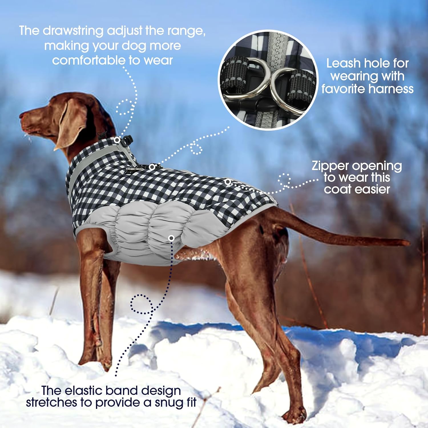 FUAMEY Dog Coat for Medium Dogs,Waterproof Dog Winter Jacket with Harness Built in Puppy Cold Weather Coats Reflective Pet Vest with Zipper Warm Fleece Dogs Snowsuit Windproof Checkerboard M