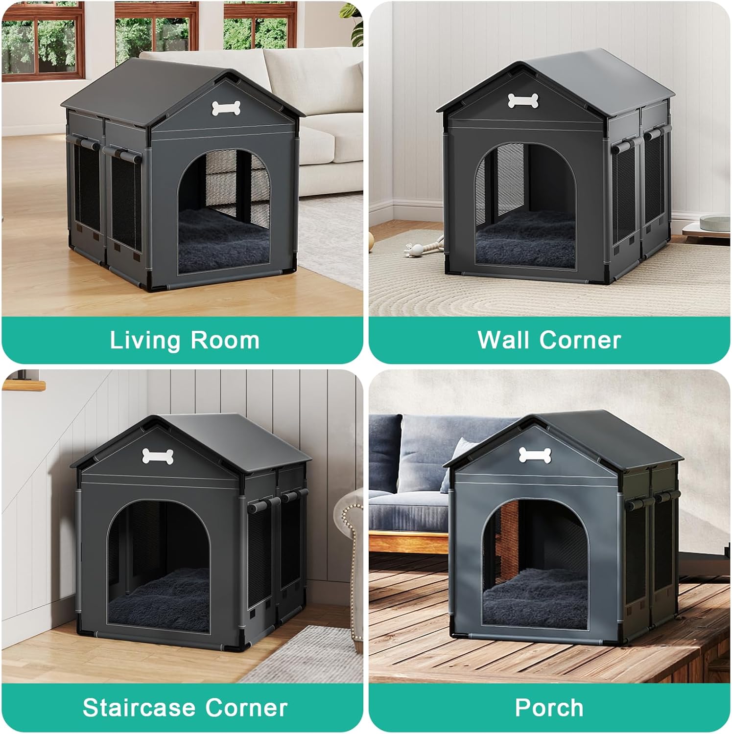 - Stable PVC Frame & 600D Thicken Oxford Cloth: The frame of our pet house is supported by plastic pipes. Compared to traditional soft dog houses made of plush fabric, our pet house will not easily be flattened by pets. In addition, our materials use outdoor windproof, UV-resistant, and rainproof Oxford cloth, ensuring the doghouse's high thermal insulation