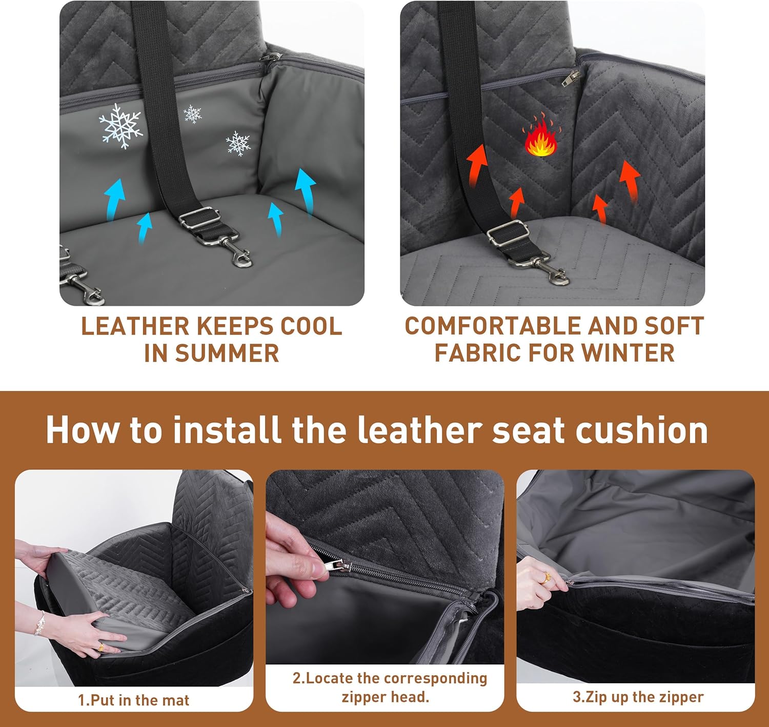 - Durable Scratch-Resistant PU Cover: This car dog seat features a detachable waterproof PU leather cover that protects against urine, spills, and scratches while protecting your car clean. The cover keeps pets cool in summer, while removing it in winter ensures warmth