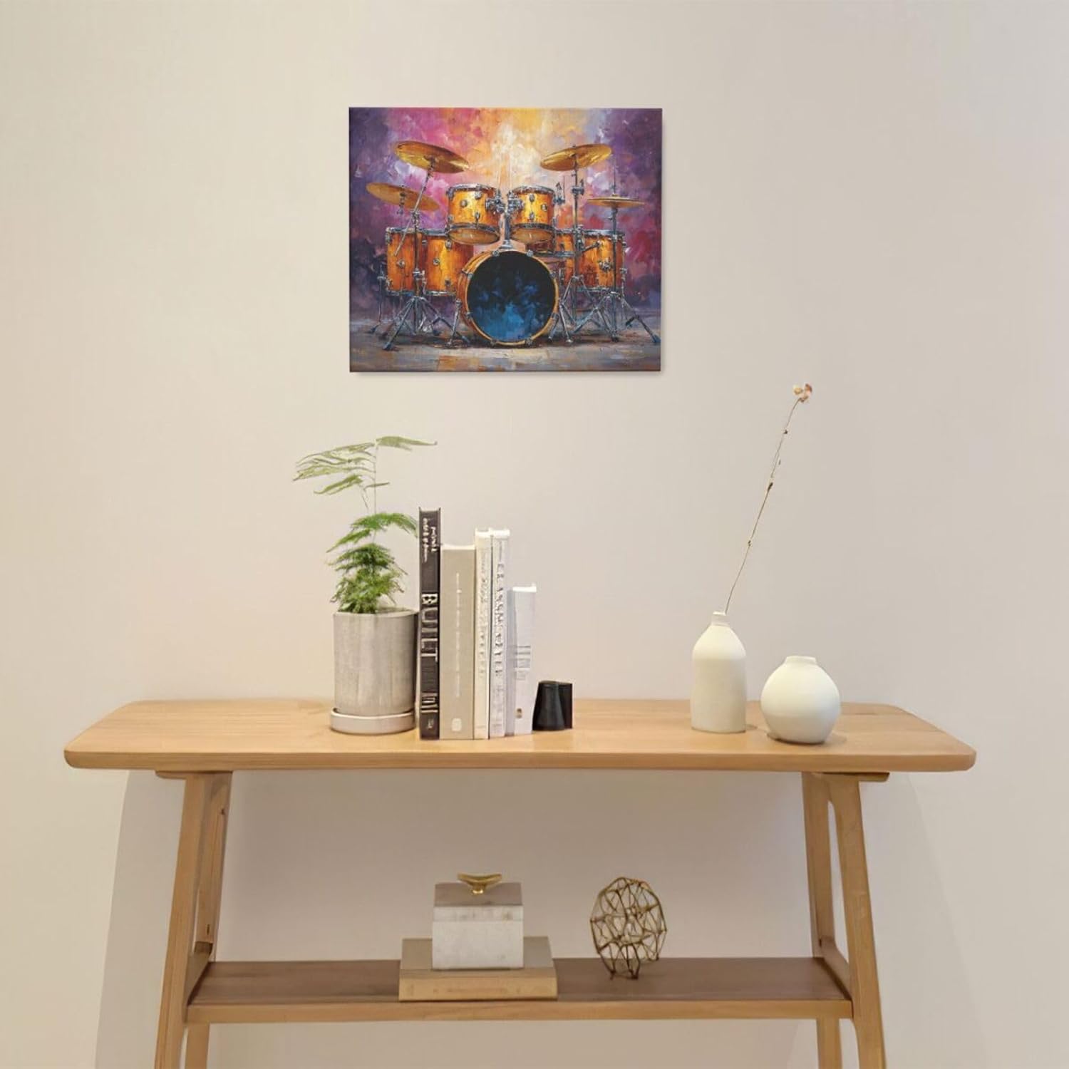 Music Wall Art Graffiti Musical Instruments Canvas Wall Decor Drum Pictures Painting Print Artwork Framed Decorations Gifts for Drummers Music Lover Studio Bar Musician Home Bedroom Living Room 20"x24"