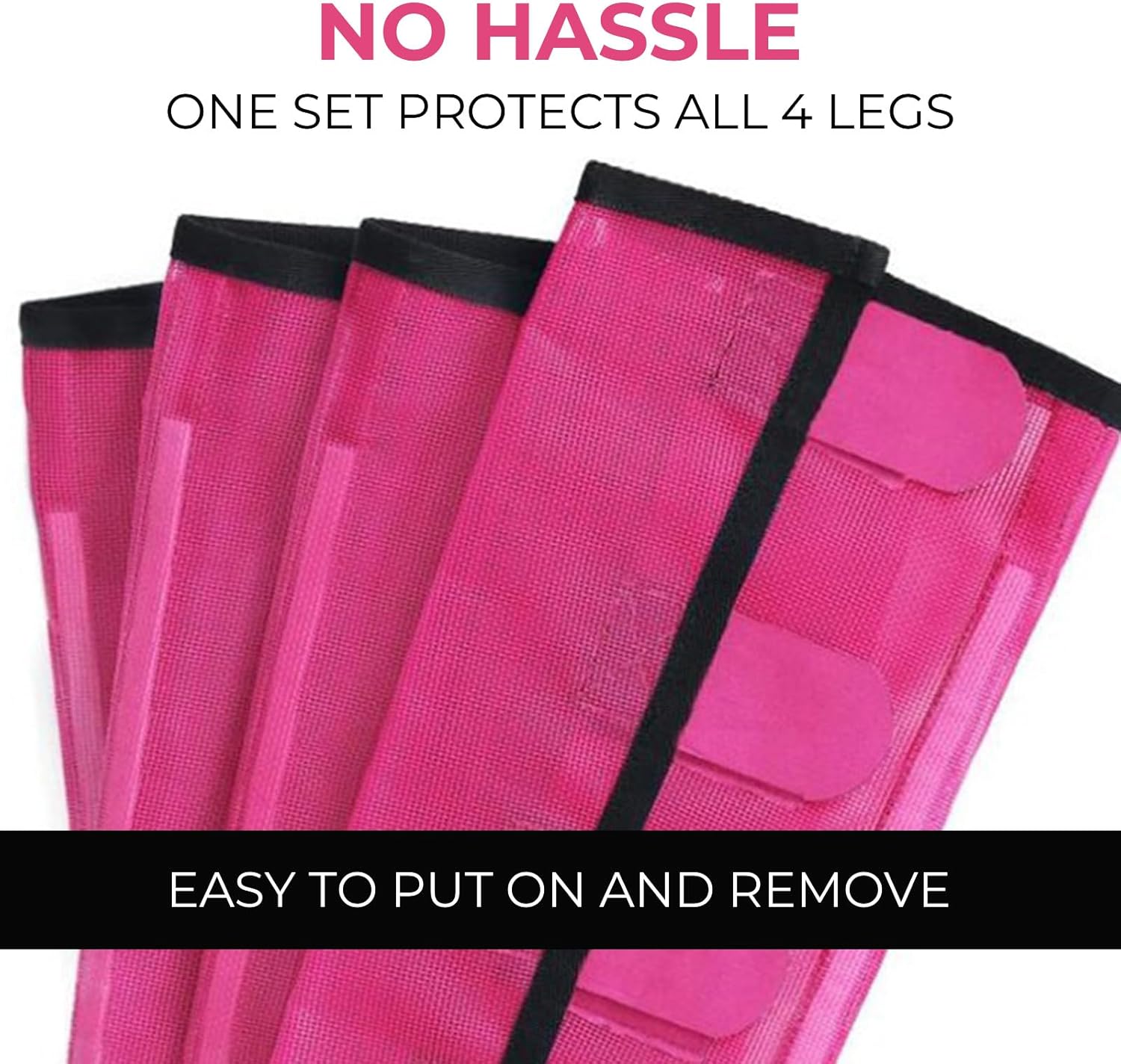 Mesh Horse Fly Boots Set of 4,Adjustable and Universal Loose Fitting & Non-Slip Horse Fly Leggings for Horses,Reduce Stressful Stomping (Pink)