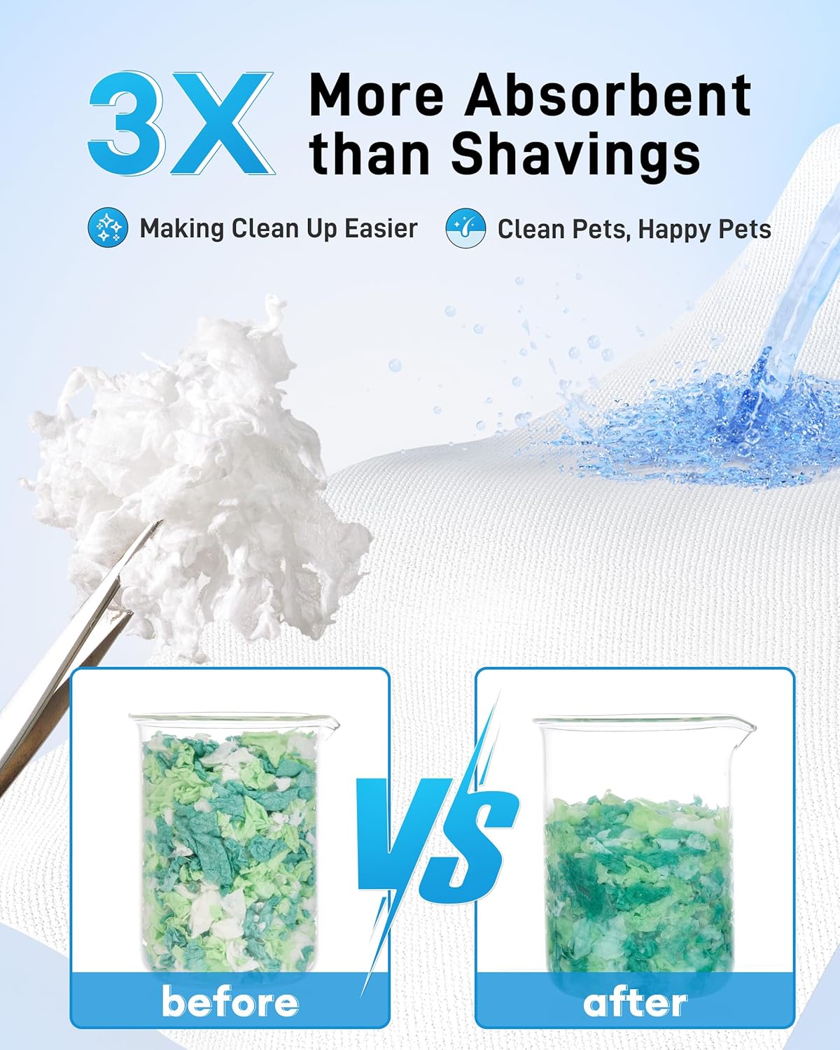 - 𝗡𝗼 𝗢𝗱𝗼𝗿 𝗭𝗲𝗿𝗼 𝗔𝗱𝗱𝗶𝘁𝗶𝘃𝗲 - Without any chemical additive, it keeps your pet's habitat smelling fresh and clean with a natural paper smell. It's 3x more absorbent, locking away odors. Sealed in a food‑grade PE bag to stay clean and dry during transportation. Any initial plastic smell will fade in a few hours if you place it in a well-ventilated area.