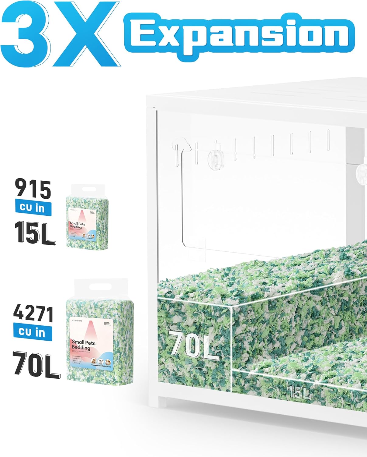 - 𝗝𝘂𝗻𝗴𝗹𝗲 𝗙𝗿𝗲𝘀𝗵 𝗠𝗶𝗻𝘁𝘆 𝗚𝗮𝗿𝗱𝗲𝗻 - 70L BUCATSTATE small animal bedding with up to 3x expansion, you can use less and still cover more space. Brighten up your pet's home with our colorful bedding! It is also like a cloud for your furry friends—soft and perfect for burrowing, tunneling, and nesting. This paw-friendly bedding is ideal for hamsters, gerbils, rats, mice, rabbits, guinea pigs, or chinchillas.