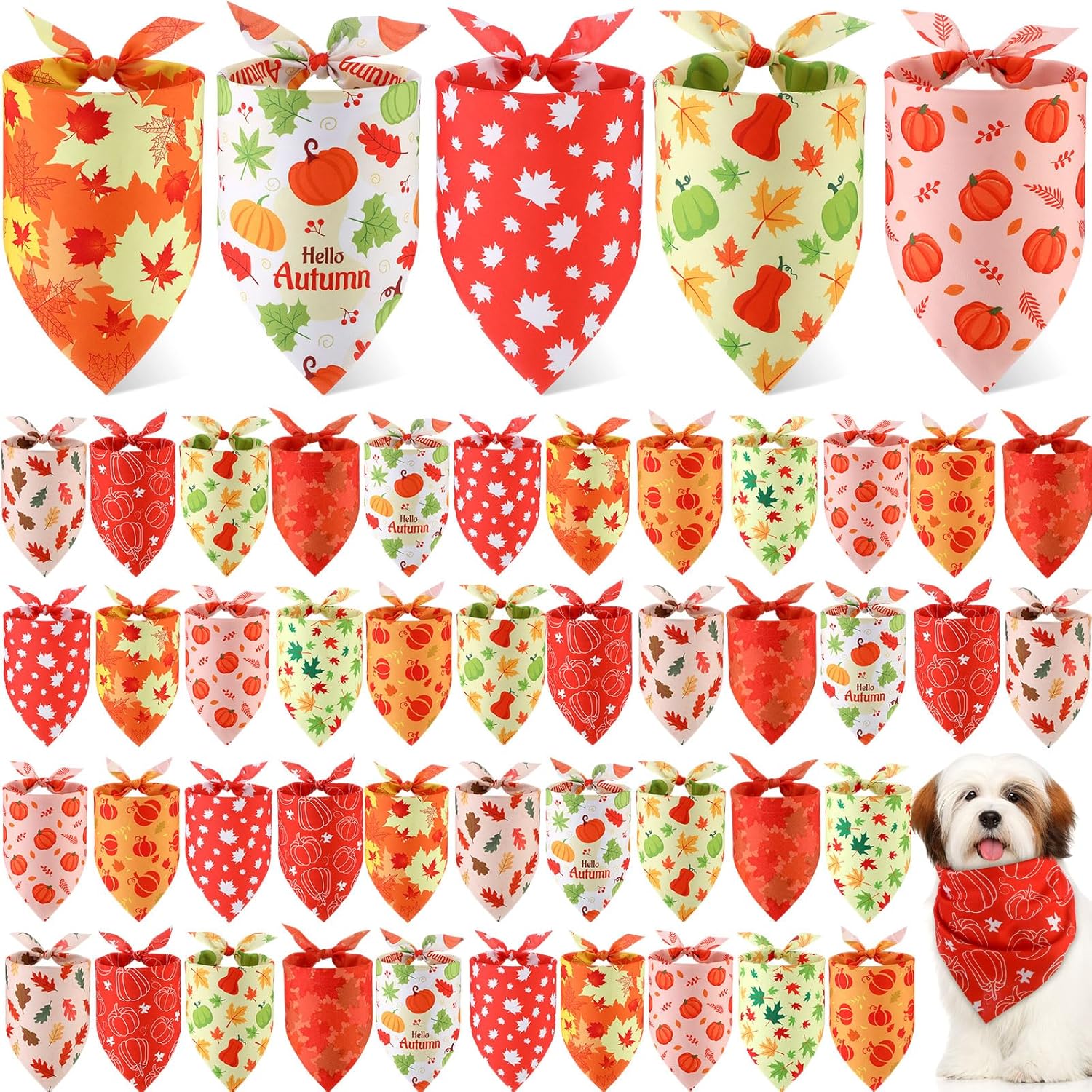 - Sufficient Quantity: there are 50 pieces Fall Maple Leaf bandanas for dogs in 10 different designs, 5 pieces each style, enough quantity can meet your pet's autumn decoration needs and replacement or share with your family and friends who have lovely pets